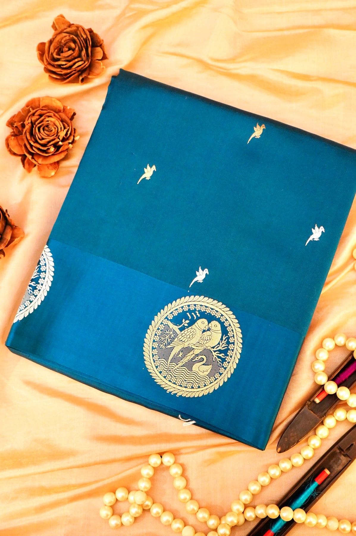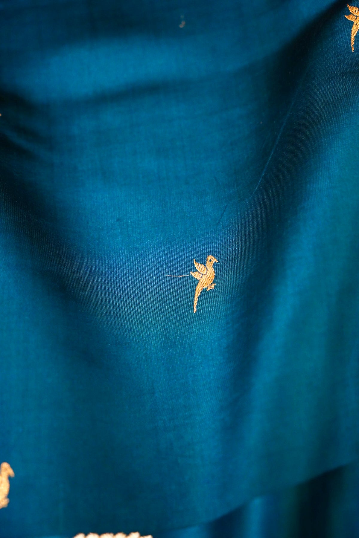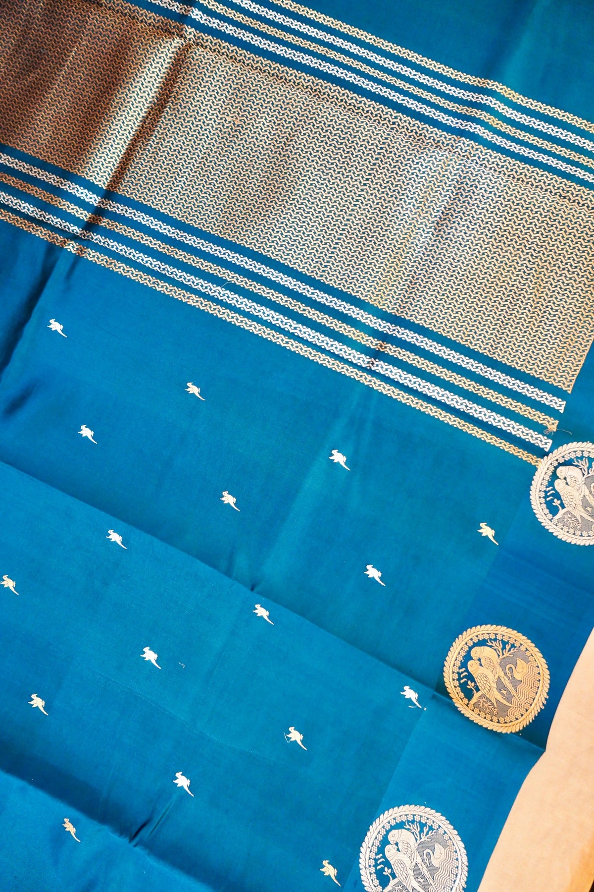 Handwoven Banarasi Teal Blue Pure Katan Silk Birds Motif Saree