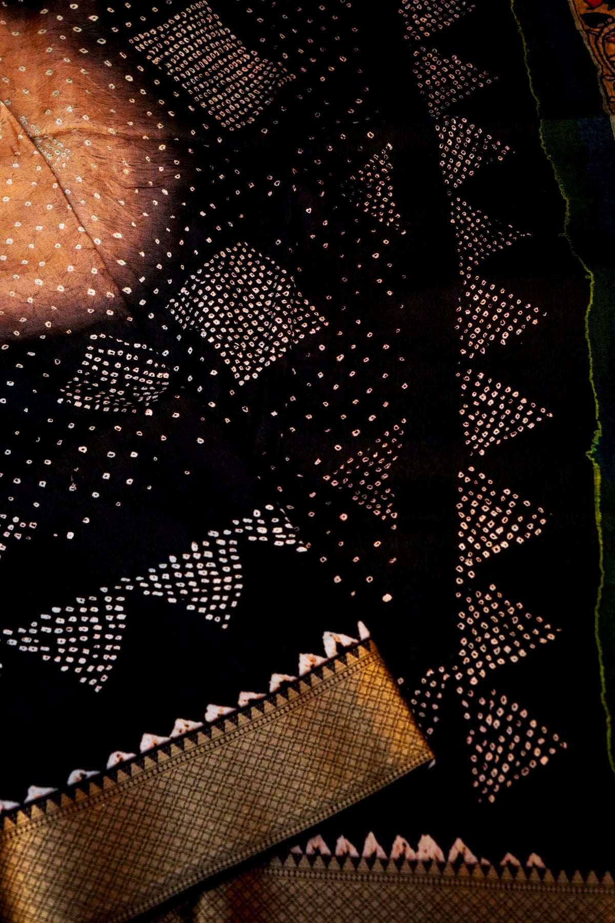 Classic Black Kalamkari and Bandhej Printed Silk Saree