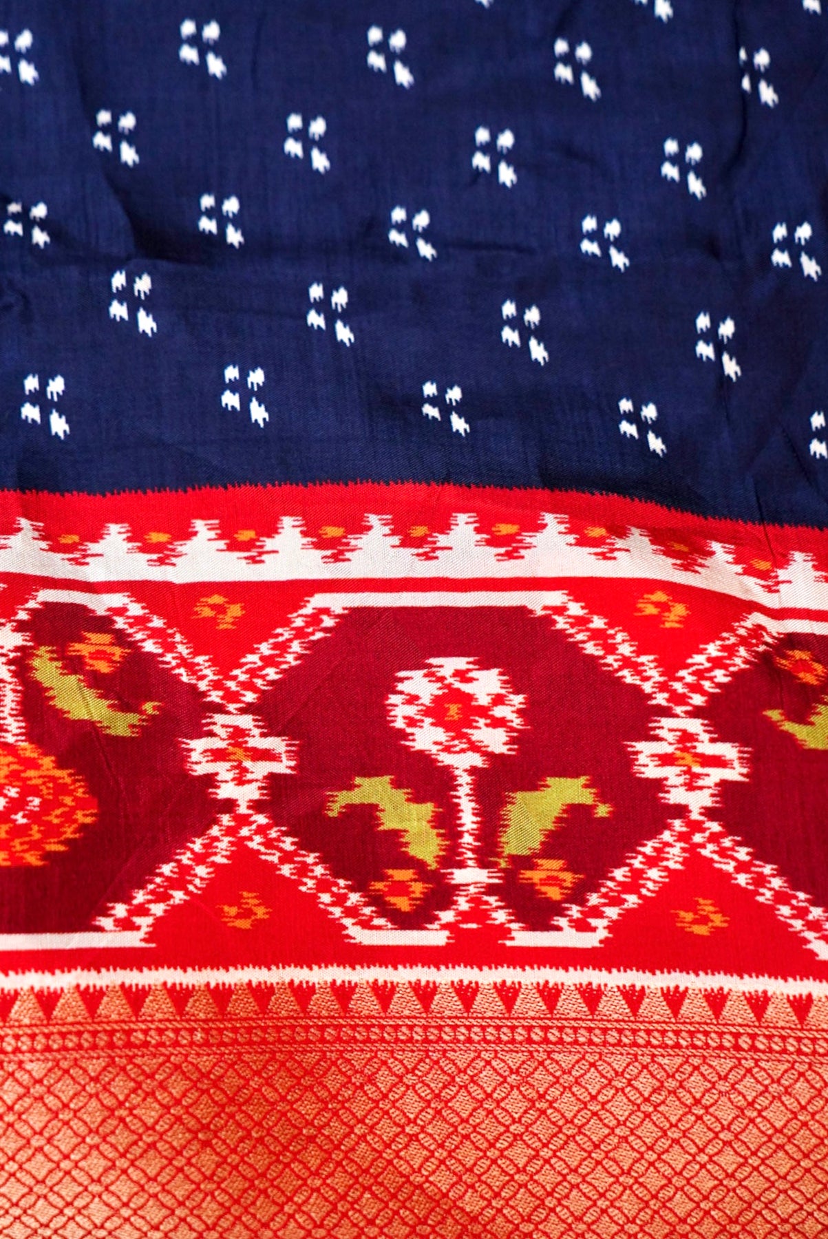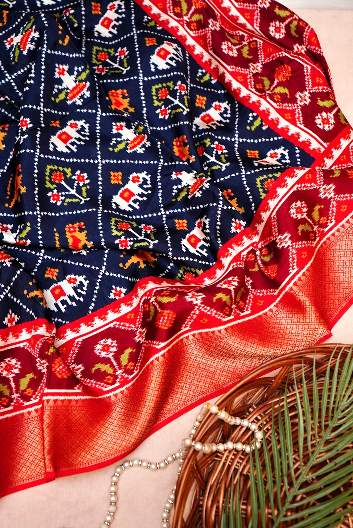 Navy Blue Patola Silk Saree with Zari Weave Contrast Border