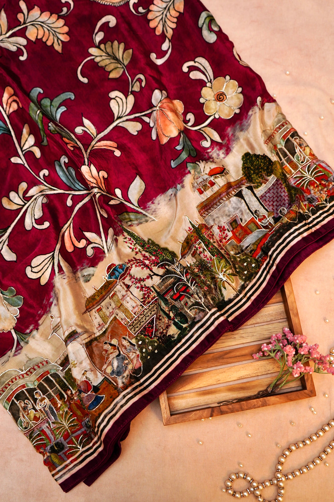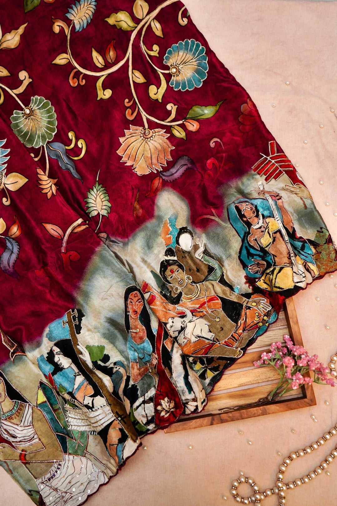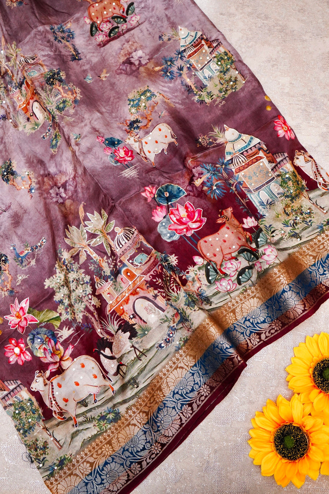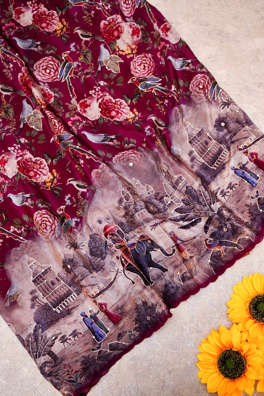 - Whispers of Nature Beige Crepe Silk Saree with Bird and Figure Motifs