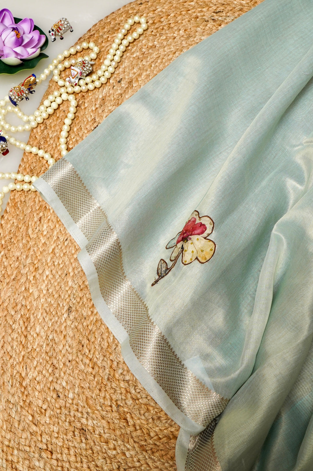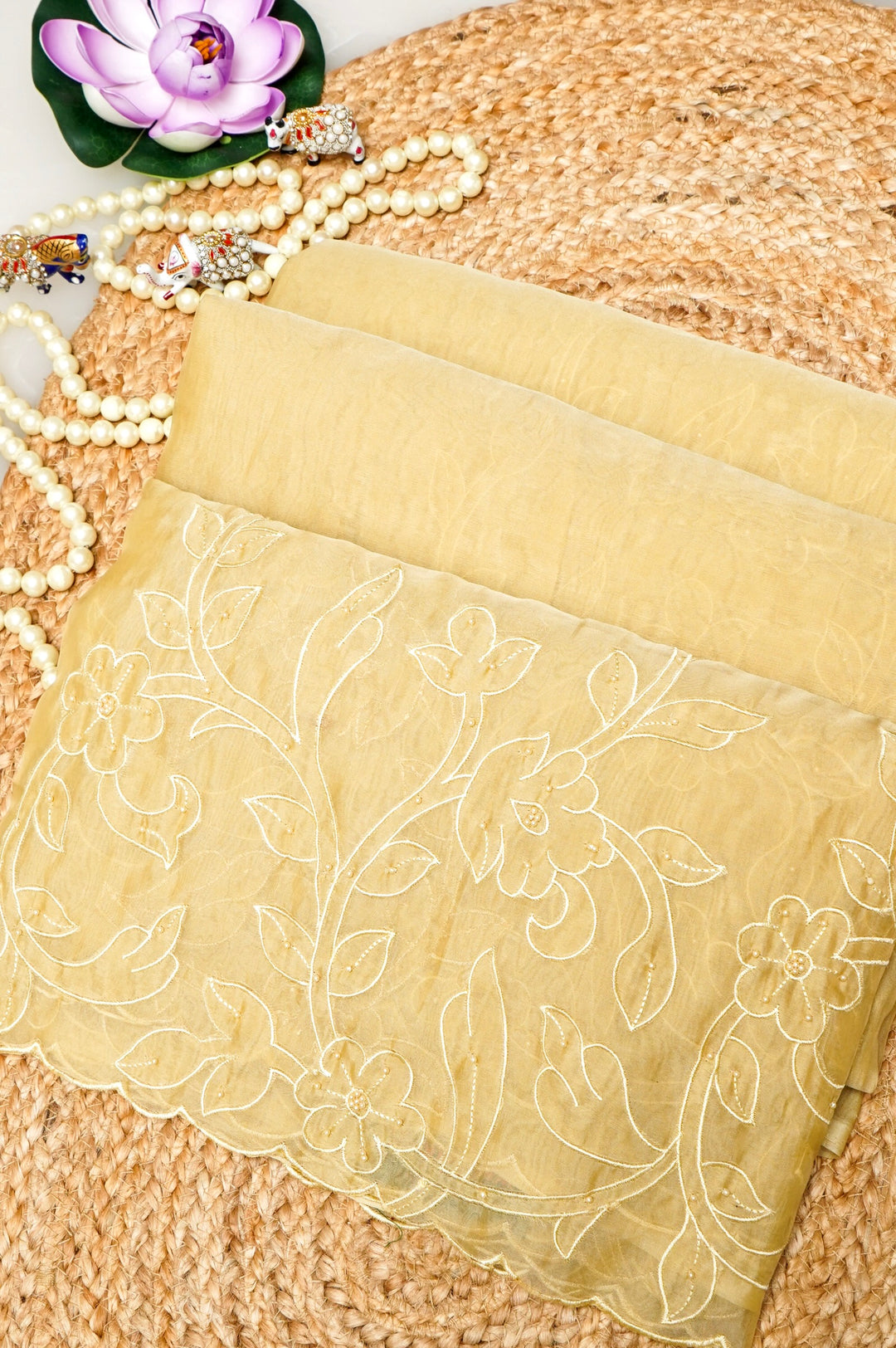- Elegant Organza Saree with Kalamkari Border & Katha-Resham Embroidery