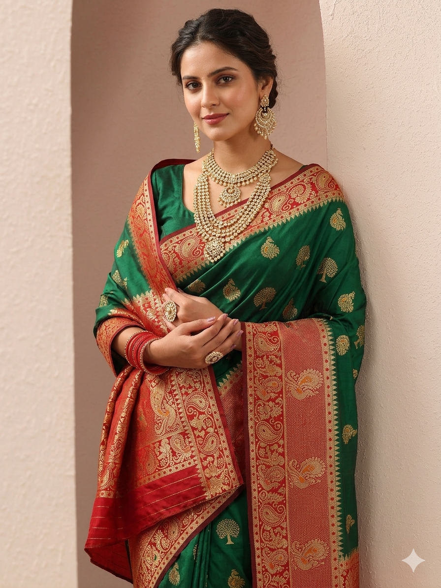 - Green Banarasi Saree – for nature-inspired elegance.