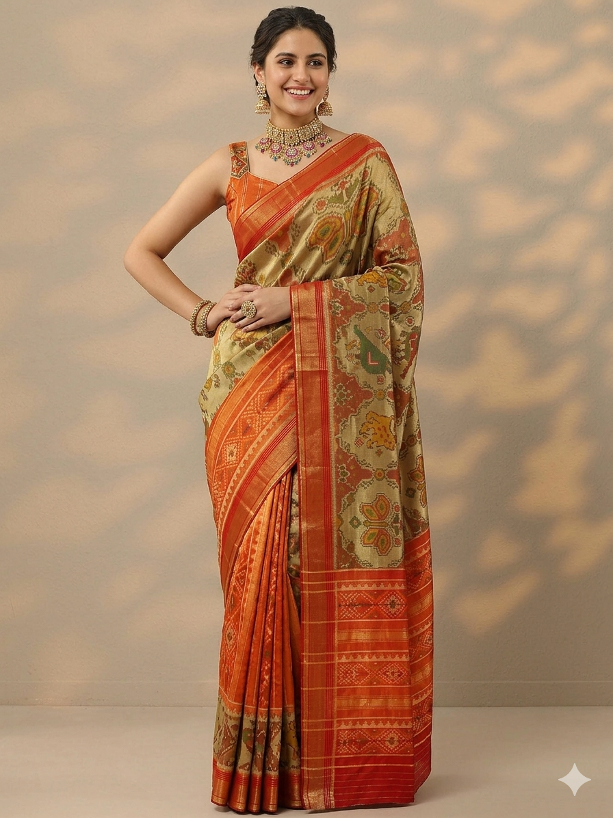 - Golden Banarasi Silk Saree – for regal opulence.