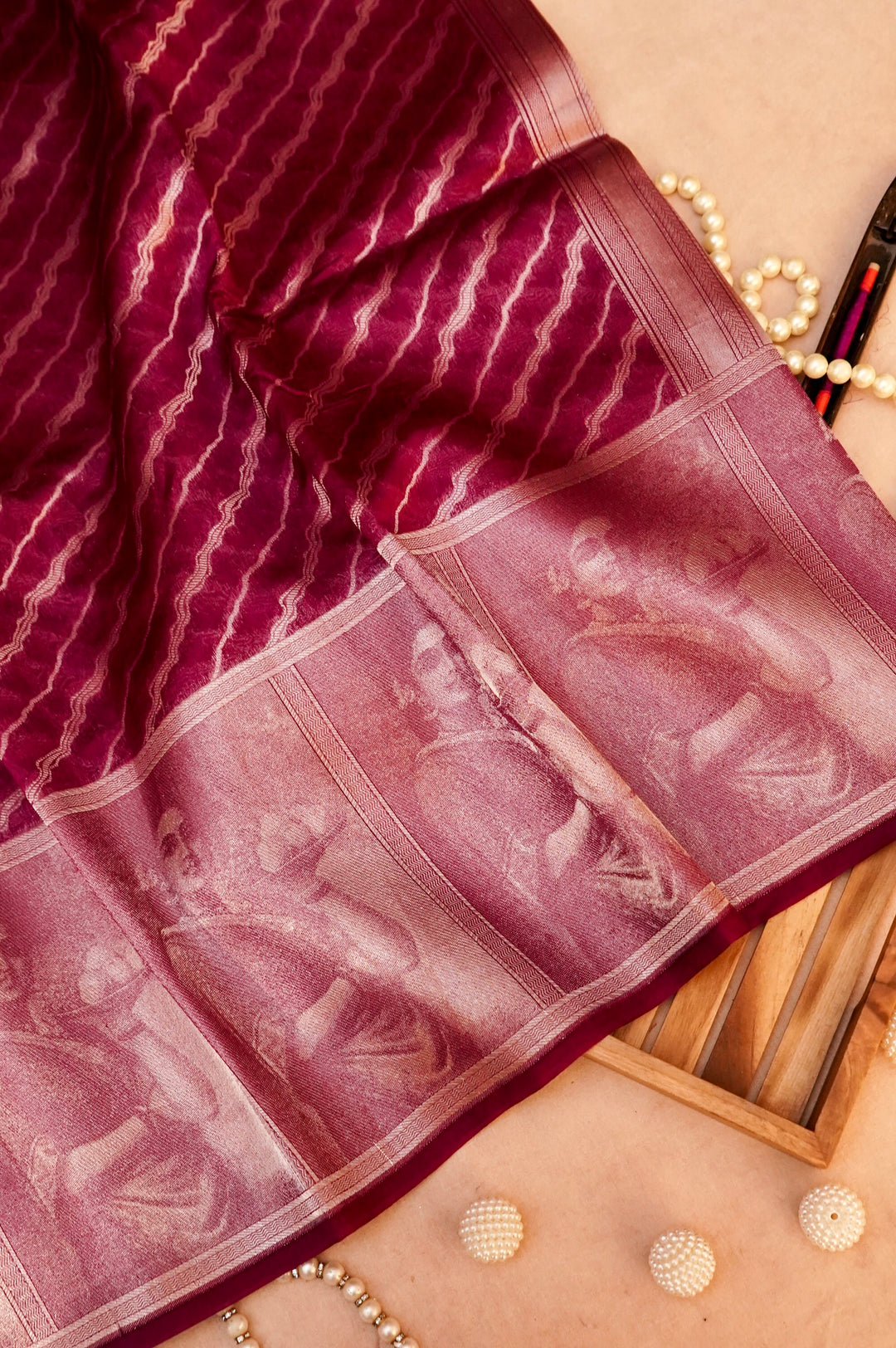 - Fowl Play Wine Banarasi Brocade Katan Silk Saree with Intricate Bird Motif