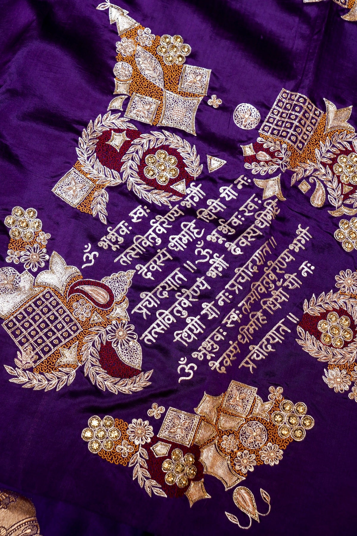 Royal Purple Pure Banarasi Handloom Silk Saree with Gayatri Mantra & Kamdhenu Motif Border