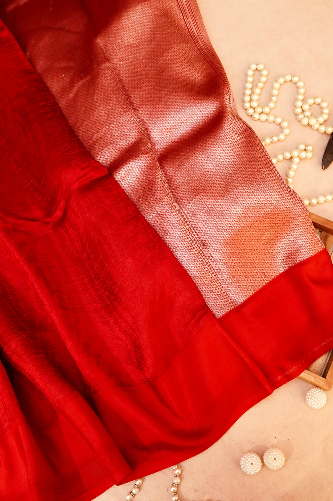 Each variant brings unique character—Katan’s structured drape, georgette’s airy fall, and mashru’s reversible brilliance. Embrace bold red or softer crimson hues, each carrying auspicious symbolism for weddings and festive celebrations.