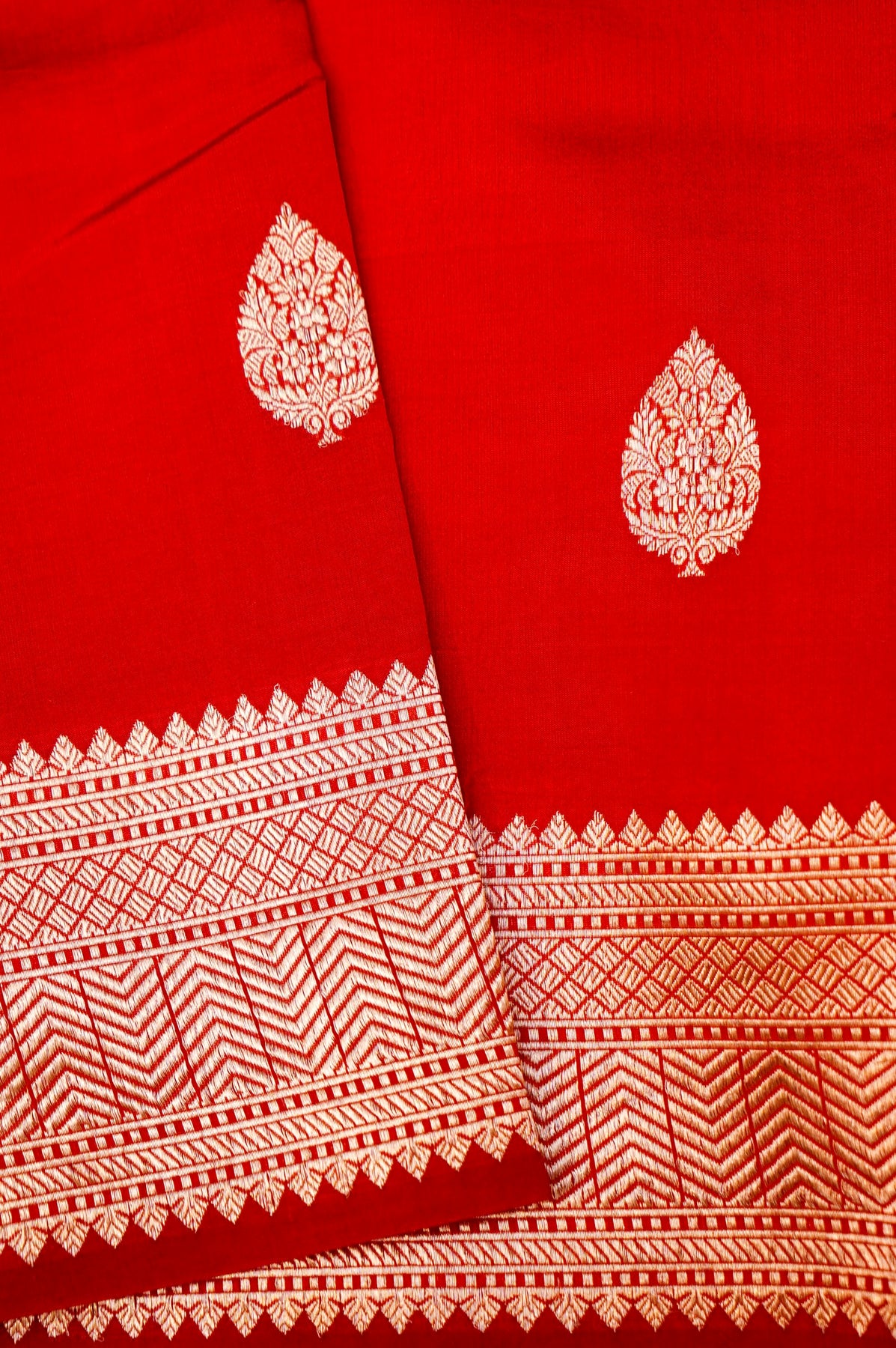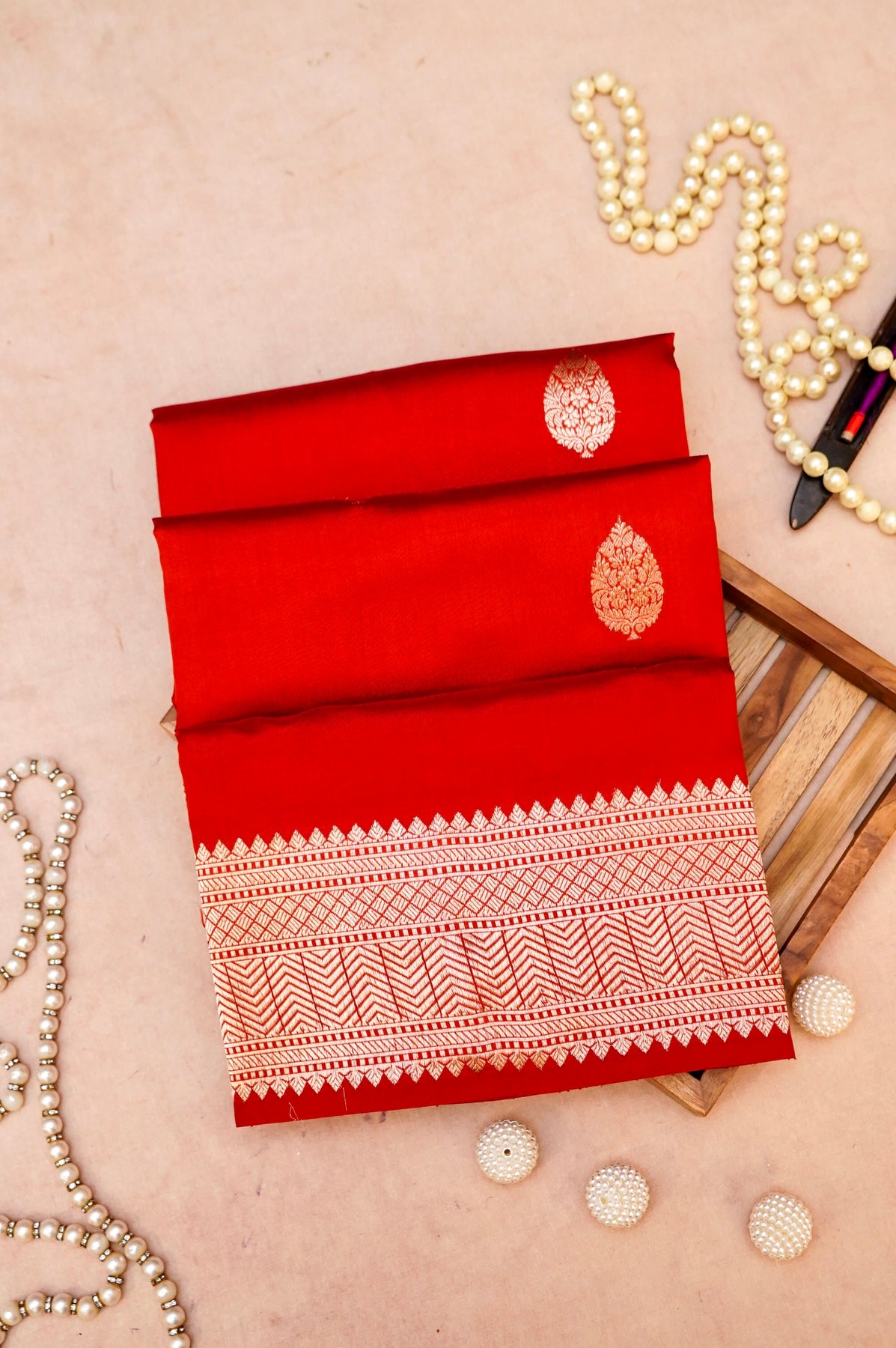 Bridal Crimson Majesty – Handwoven Bridal Banarasi Pure Katan Silk Saree with Zari Bootidar Weaving