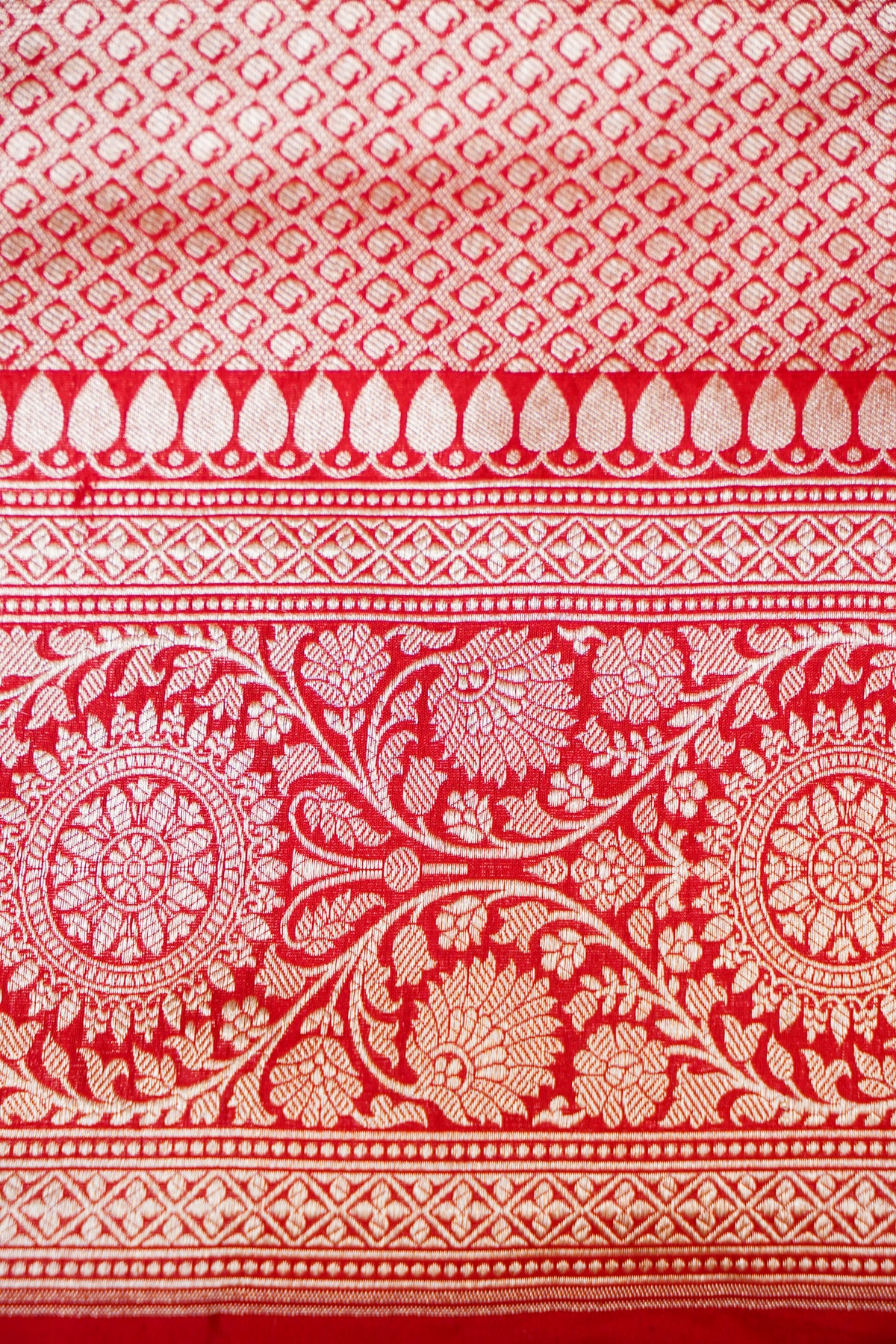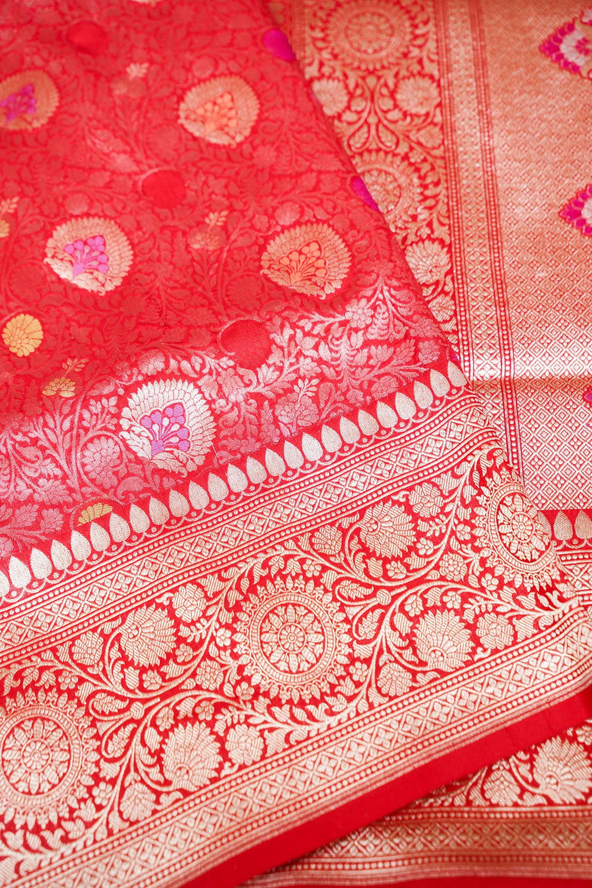 Red Bridal Handwoven Banarasi Pure Katan Silk Brocade Meenakari Jaal Saree