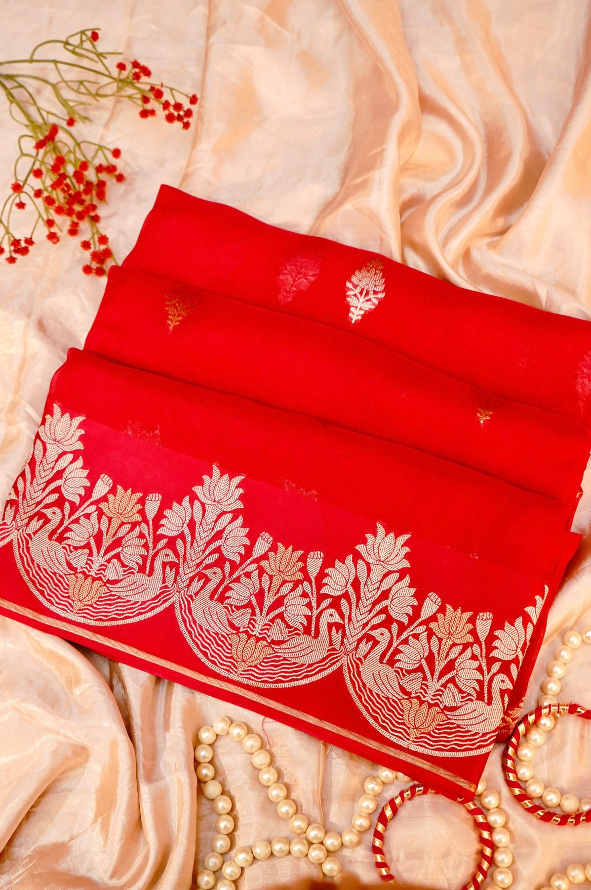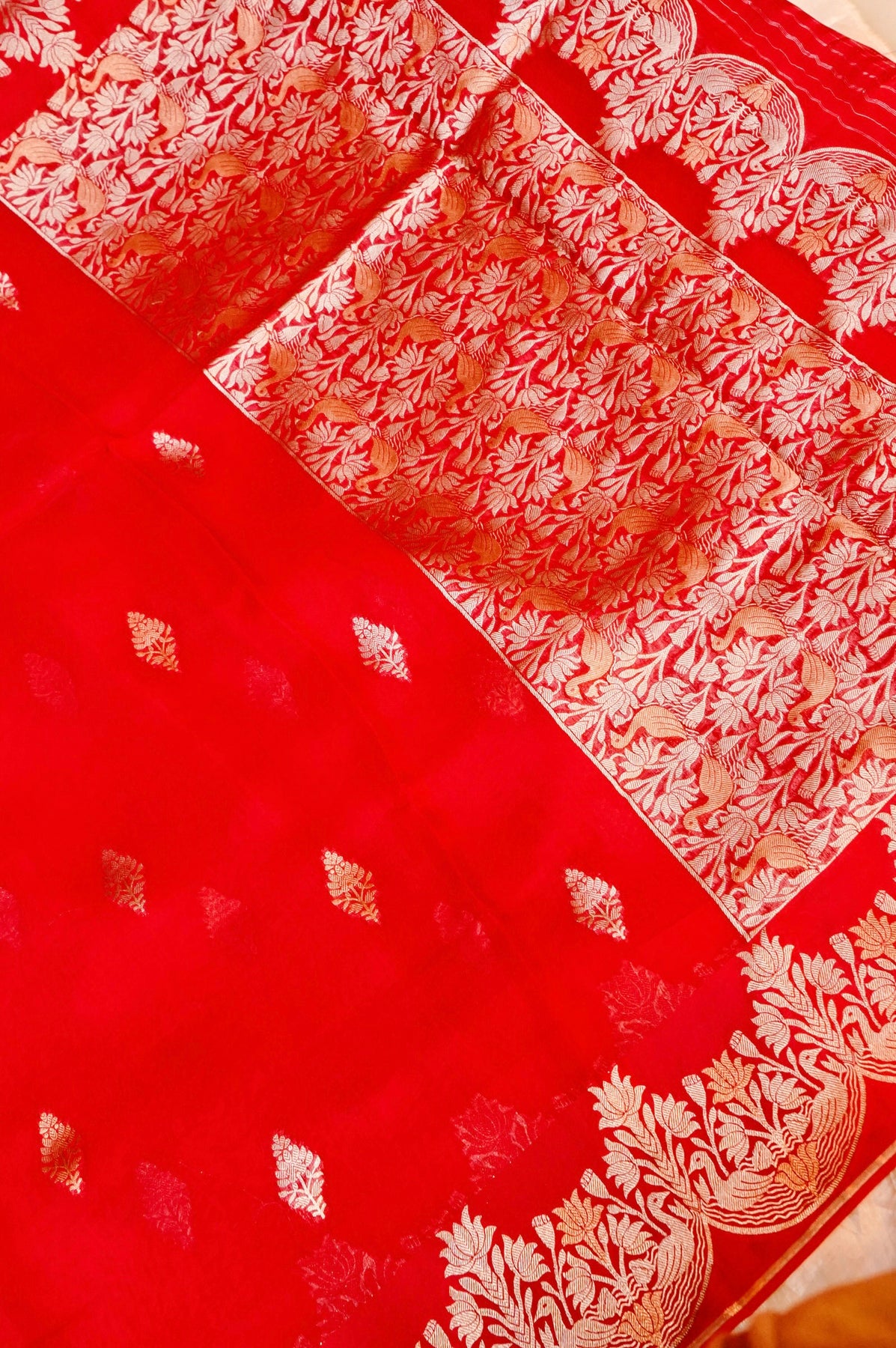 Regal Red Wedding Wear Sonaroopa Muslin Organza Bridal Saree