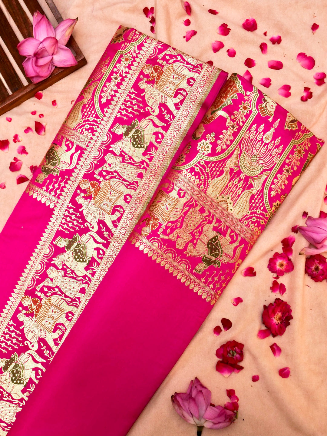 - Royal Pink Banarasi Pure Satin Silk Saree with Heavy Zari Work