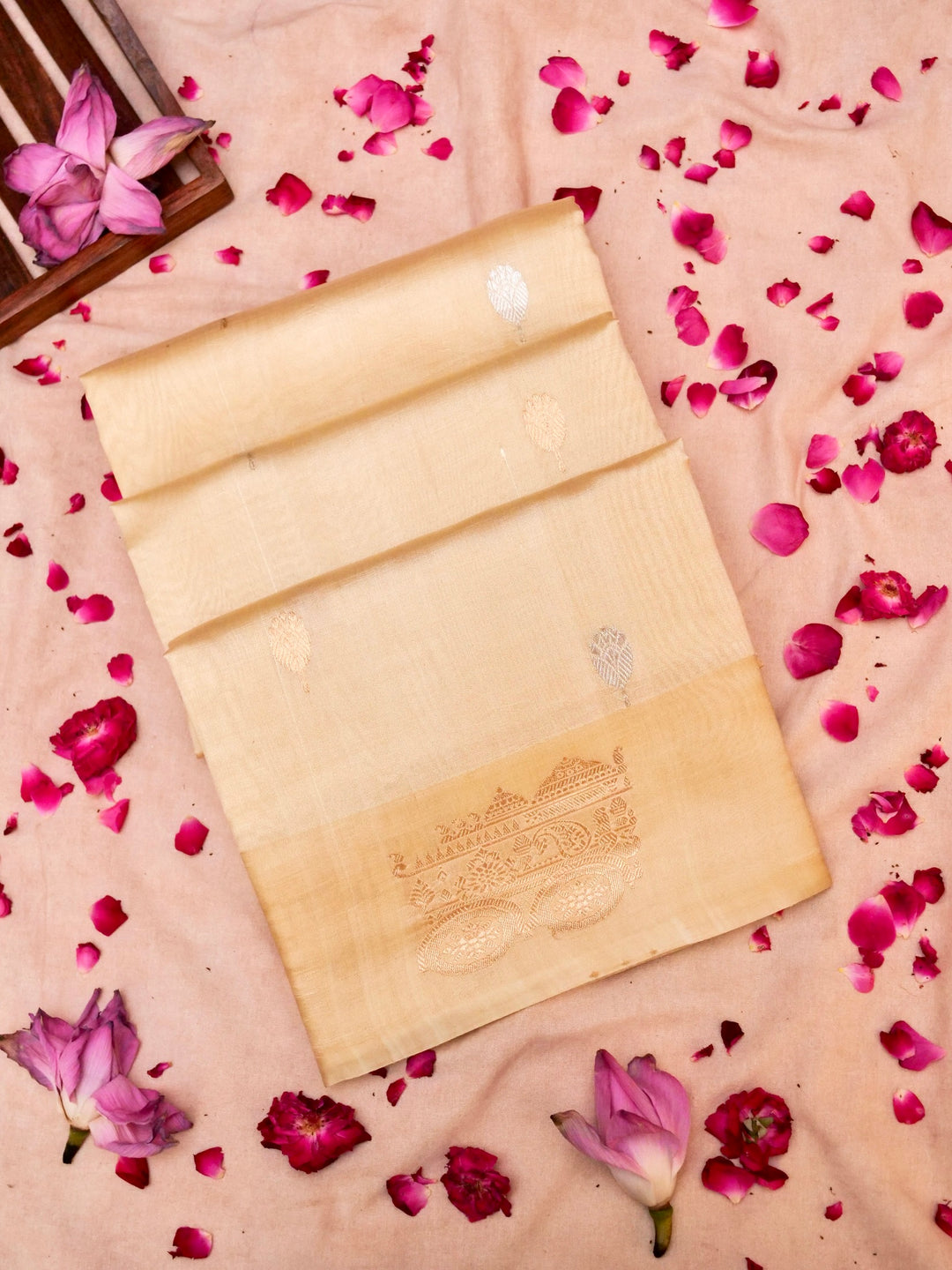 - Creme White Pure Silk Saree with Kadwa Soonaroopa Satin Border