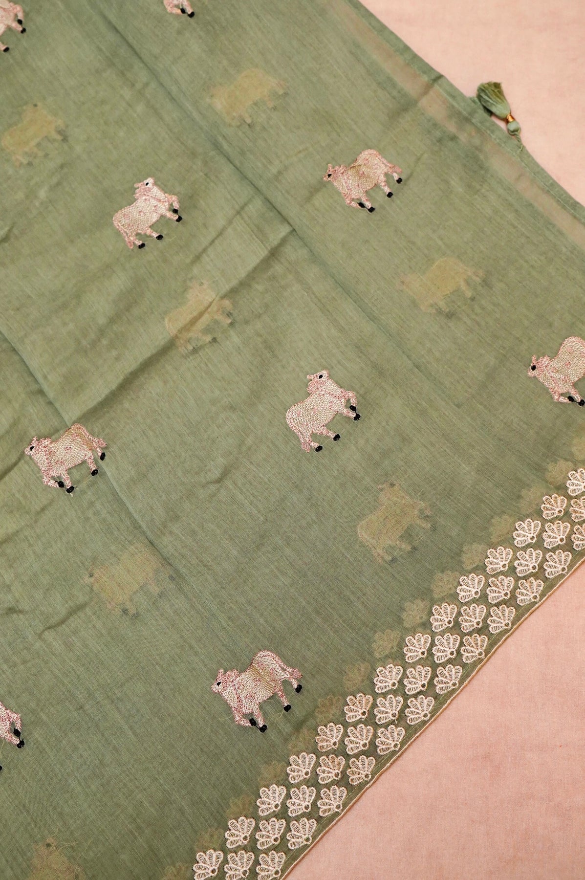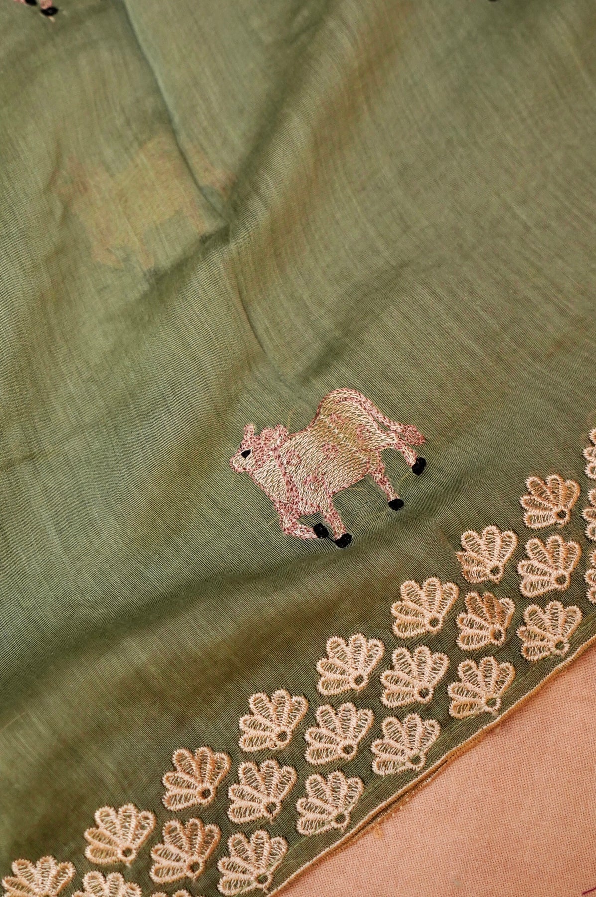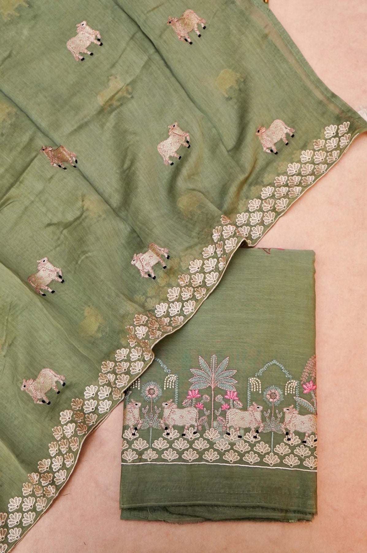 Sage Green Pure Chanderi Silk Pichwai Suit Set