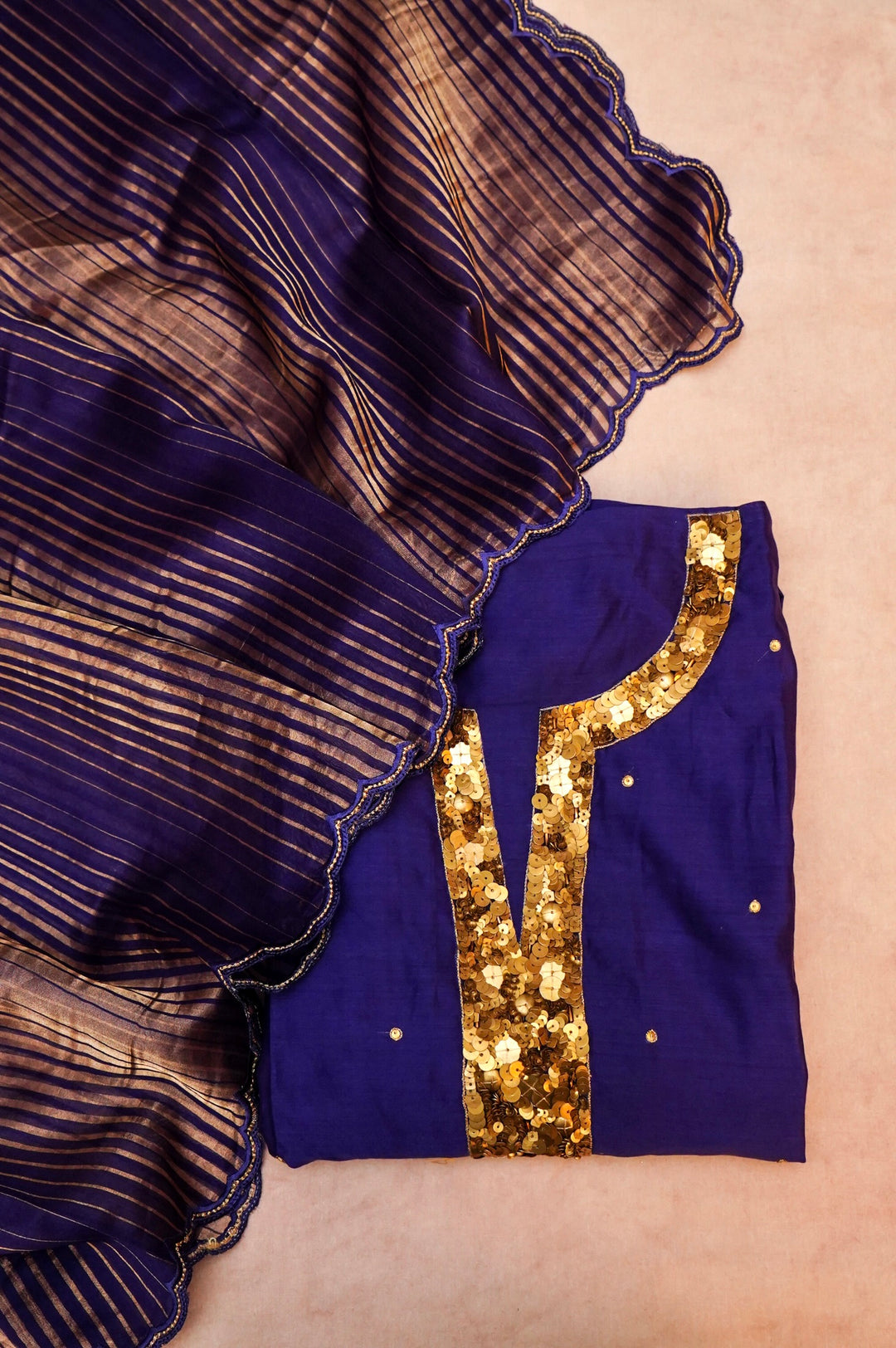 - Handwoven Banarasi Blue Katan Silk Brocade Fabric
