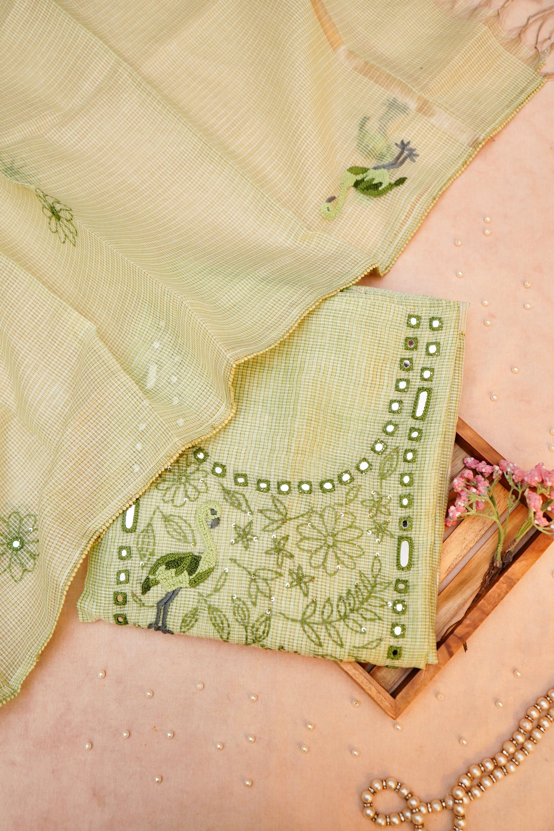 - Navy Blue Kota Check Saree with Birds Motif Silk Border