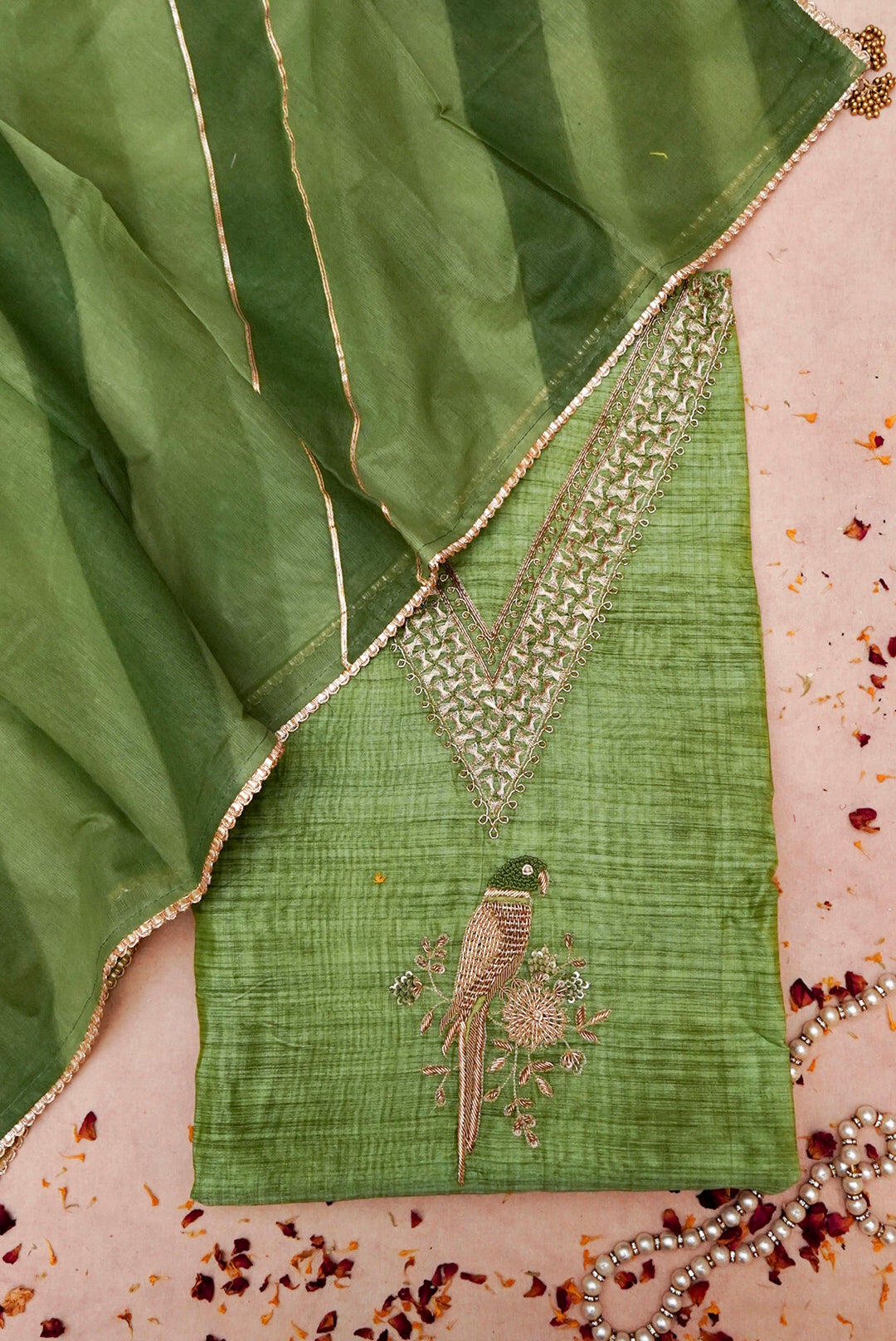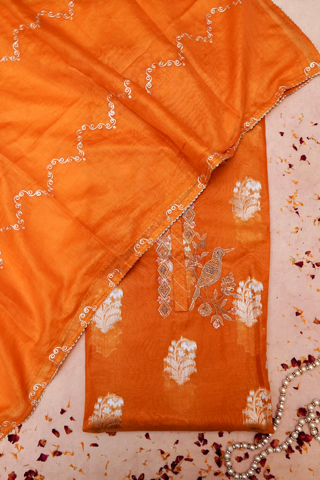 - Beige Gold Pure Chanderi Tissue Silk Suit with Zardozi & Resham Embroidery