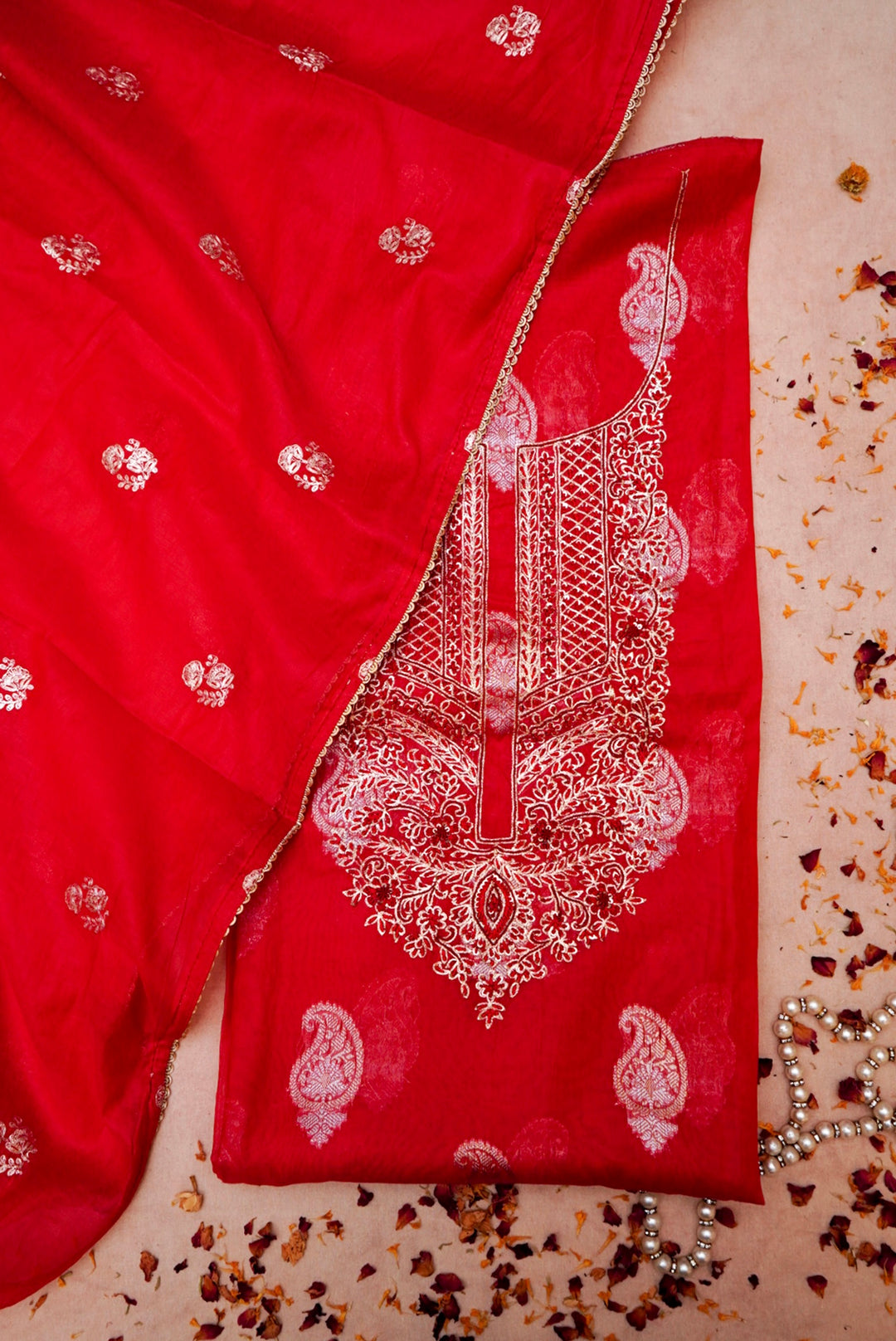 - Maroon Bridal Banarasi Silk Suit with Banarasi Booti Dupatta