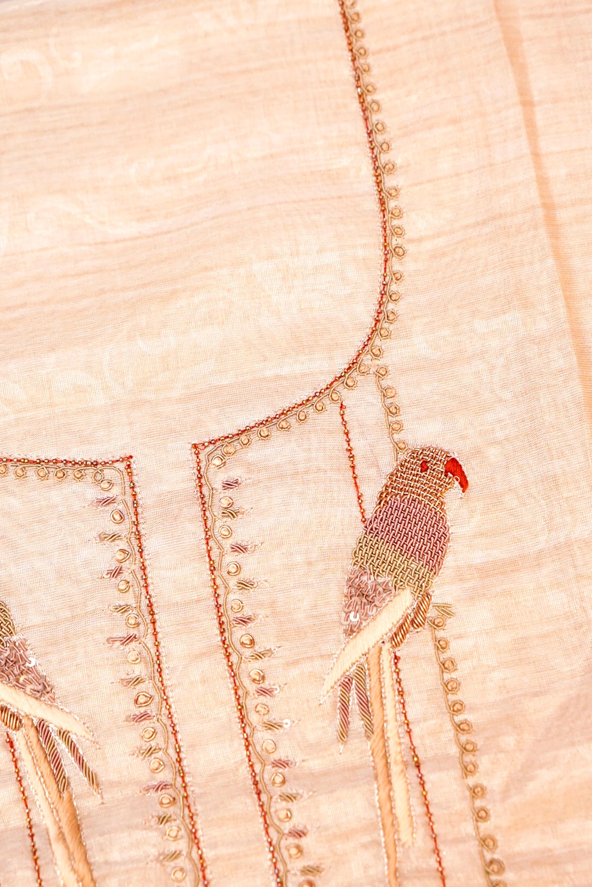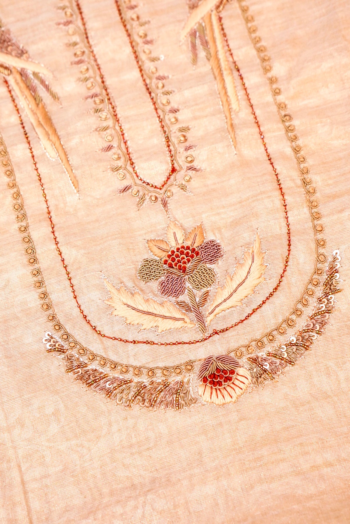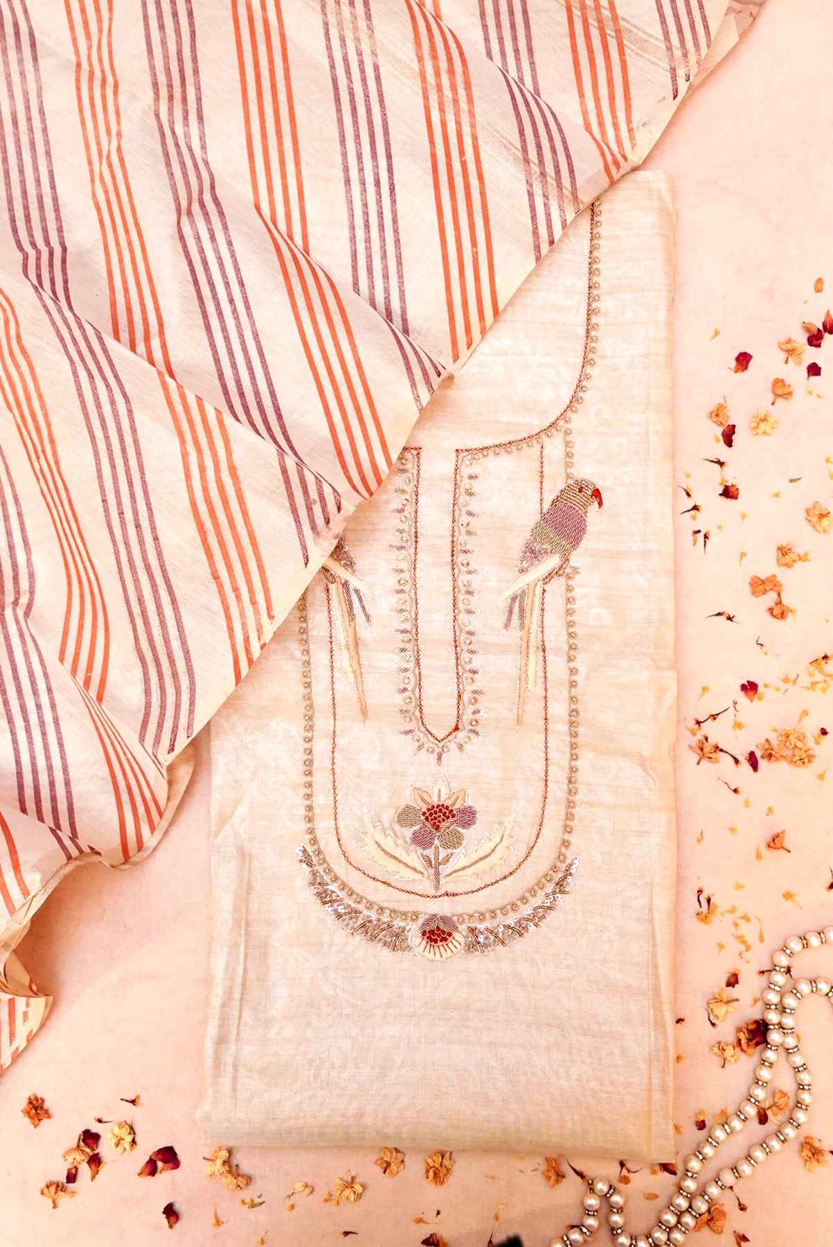 Beige Gold Pure Chanderi Tissue Silk Suit with Zardozi Embroidery