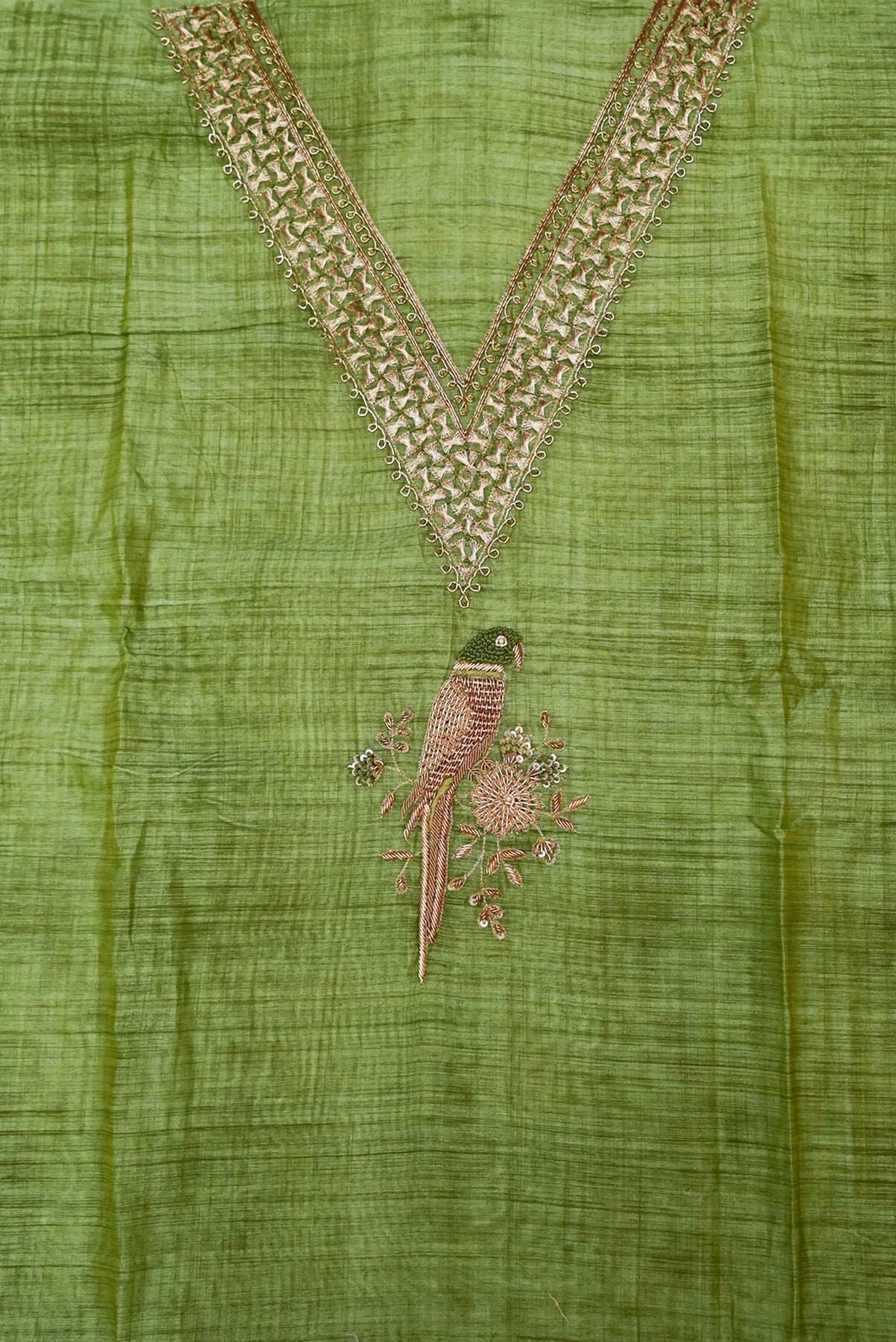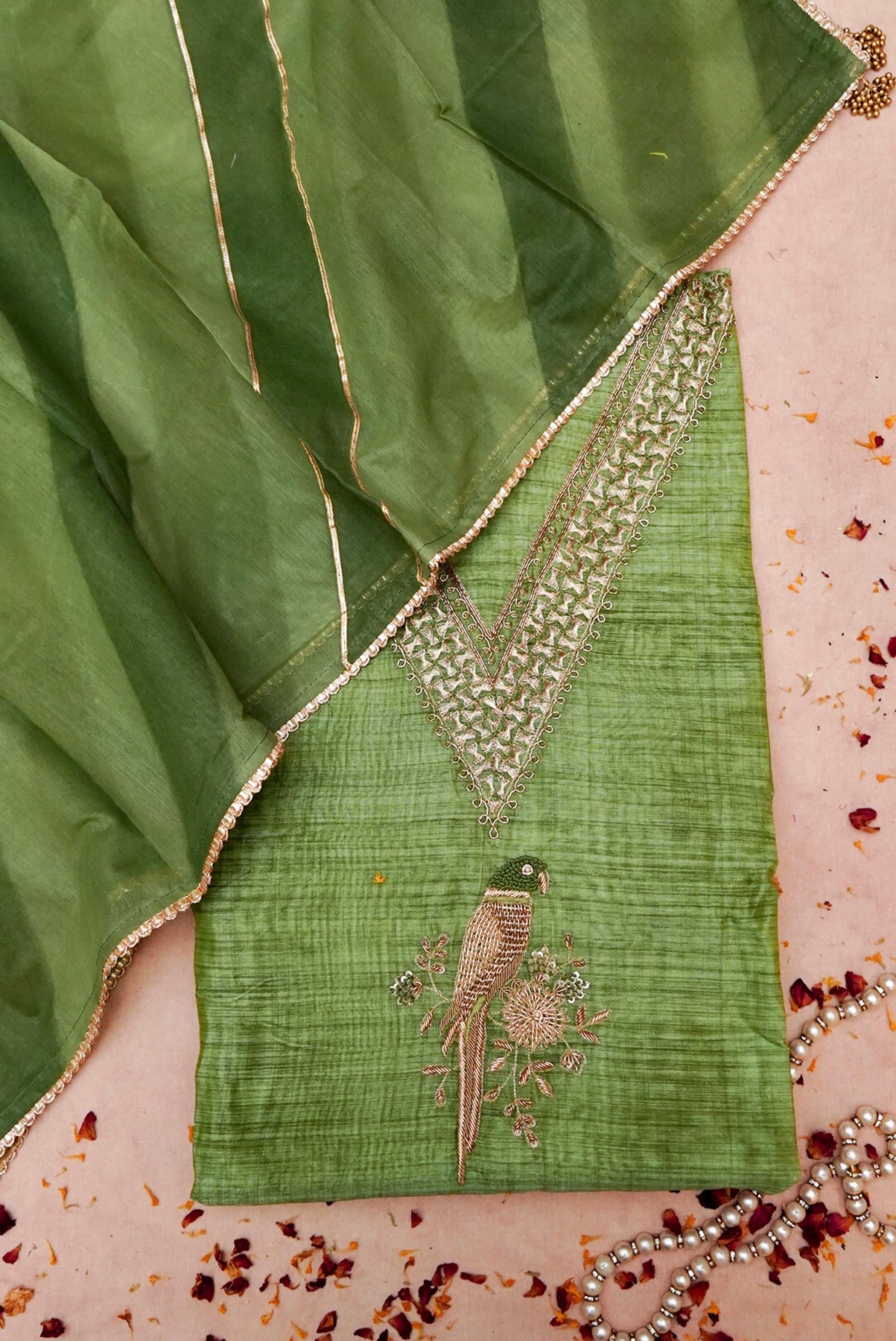 Green Chanderi Silk Suit with Zardozi Embroidery and Gotta Lace Work Dupatta
