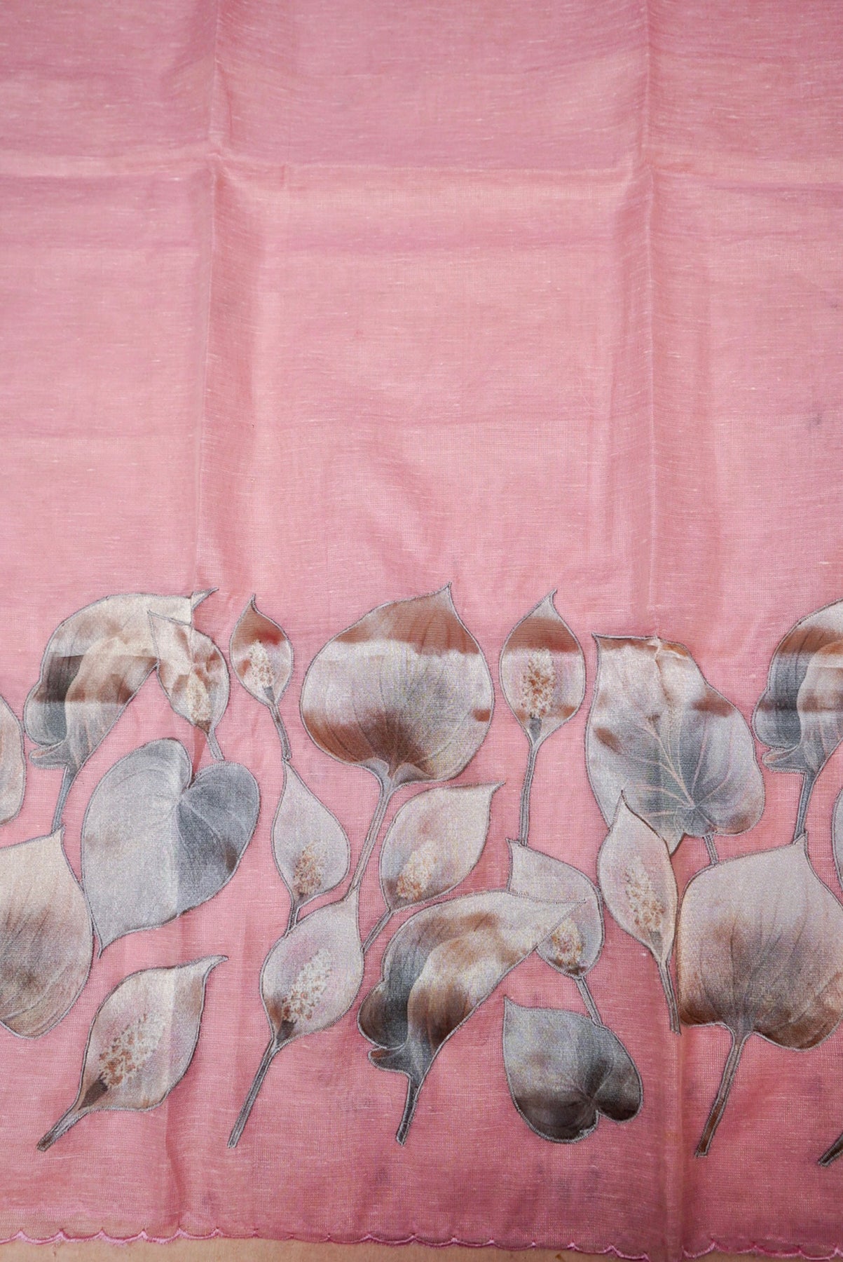 Pink Pure Chanderi Tissue Silk Suit with Applique Work and Dupatta