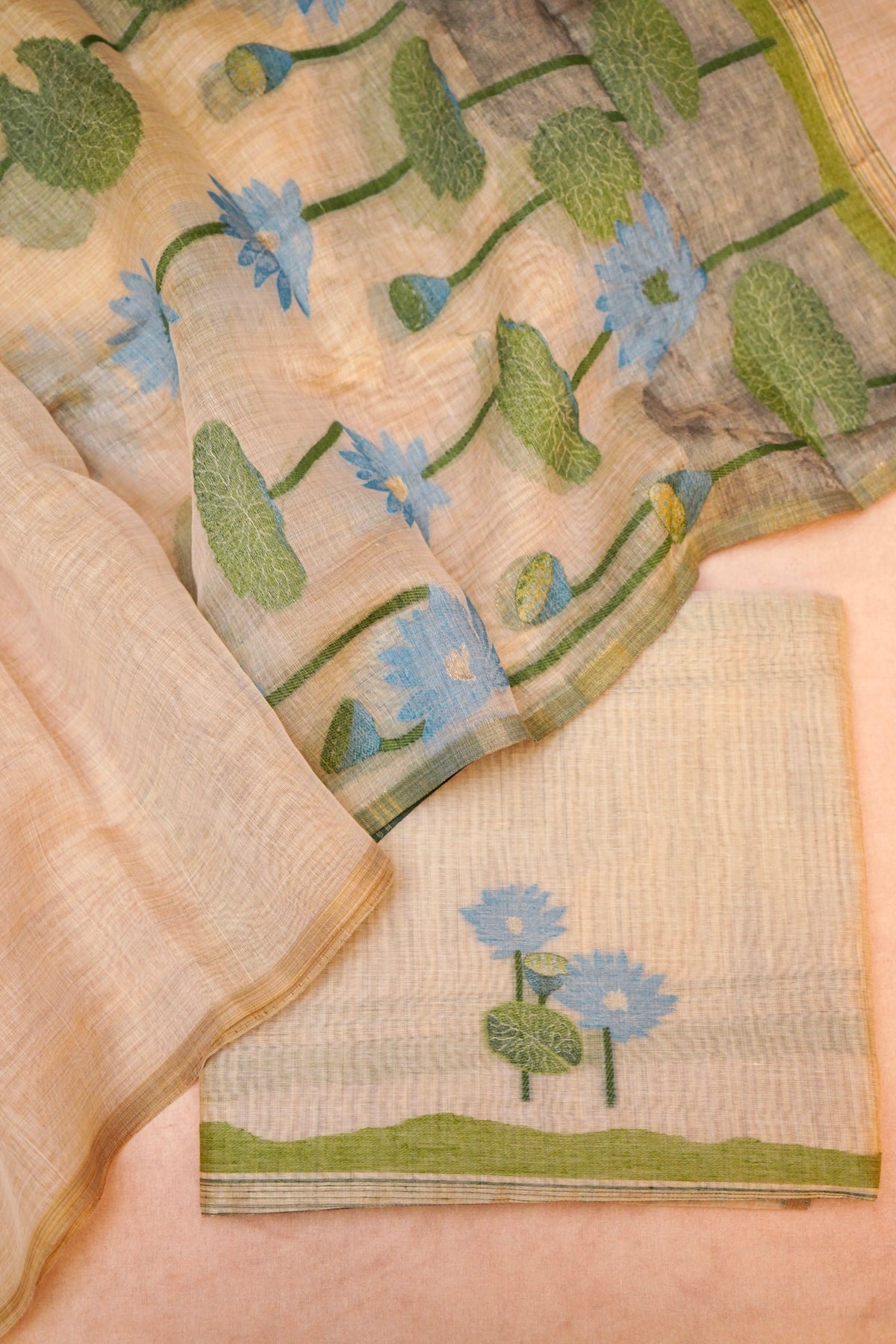 Bring a fresh and lively touch to your wardrobe with this Beige-Gold Cotton Silk Suit Set, adorned with blue and green thread embroidery in delicate floral motifs. The lustrous cotton silk fabric offers a graceful drape and comfortable fit, while the vibrant embroidery adds a cheerful pop of color to the subtle golden base. Perfect for festive occasions, weddings, or elegant daywear, this ensemble celebrates handcrafted artistry with a contemporary, refreshing palette