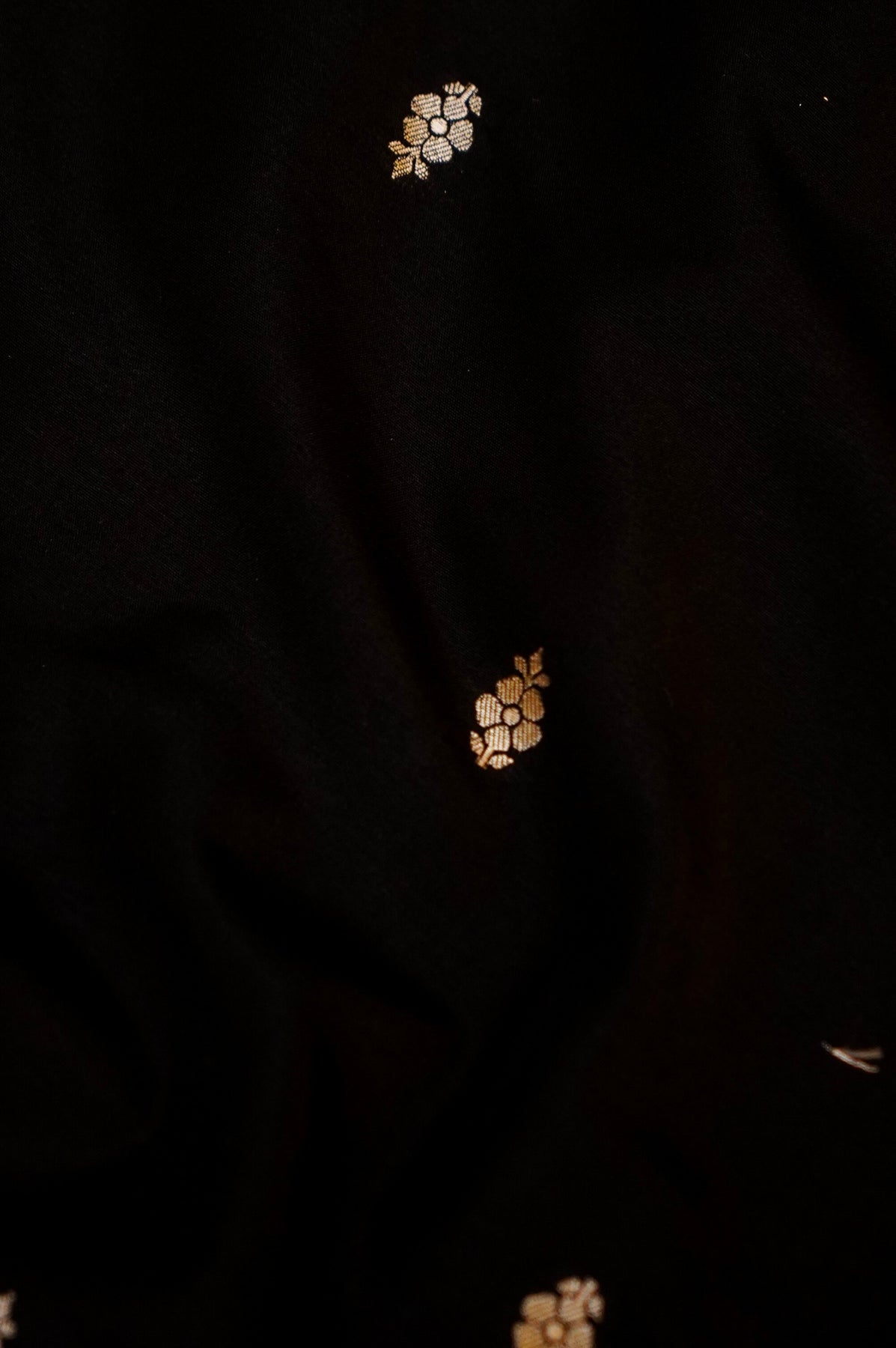Grace meets grandeur in this Black Banarasi Katan Silk Suit Set, woven to perfection by master artisans. The top showcases exquisite bird motifs, symbolizing elegance and freedom, brought to life with fine zari craftsmanship. Paired with a bootidar dupatta that adds a touch of shimmer and tradition, this ensemble is ideal for evening celebrations, festive gatherings, or timeless traditional wear.Select 33 more words to run Humanizer