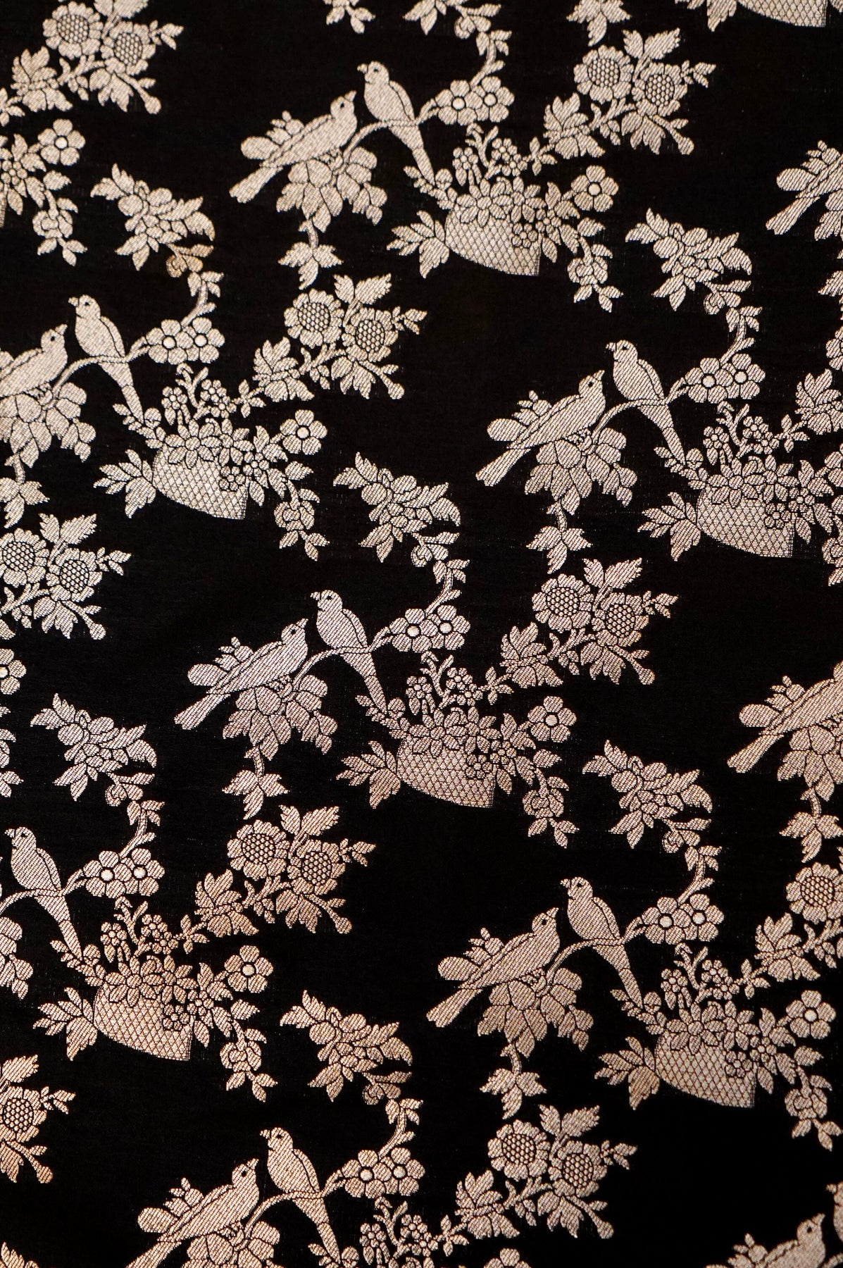 Black Banarasi Katan Silk Suit Set with Birds Motif Top and Bootidar Dupatta