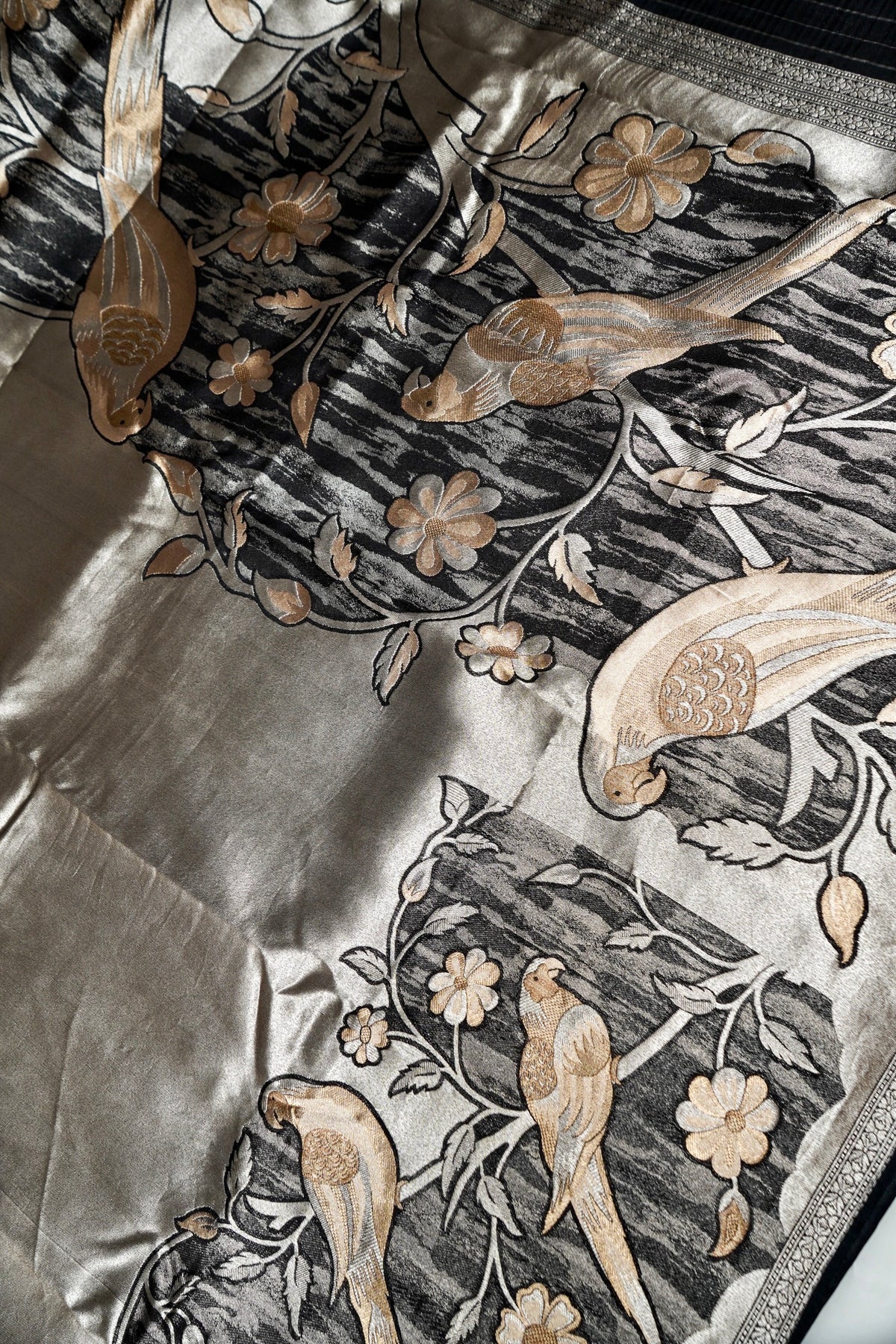 Black Pure Banarasi Crepe Tissue Saree with Contemporary Design Pattern