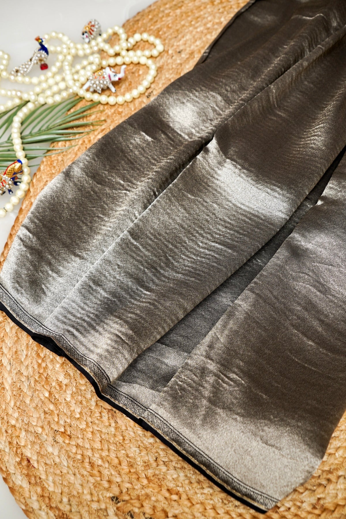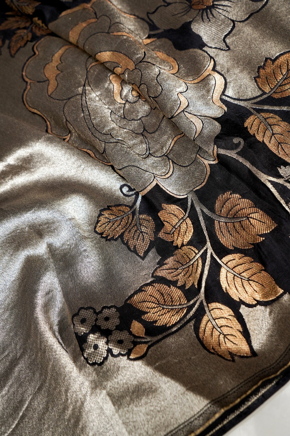 Black Pure Banarasi Crepe Tissue Saree with Contemporary Design Patterns