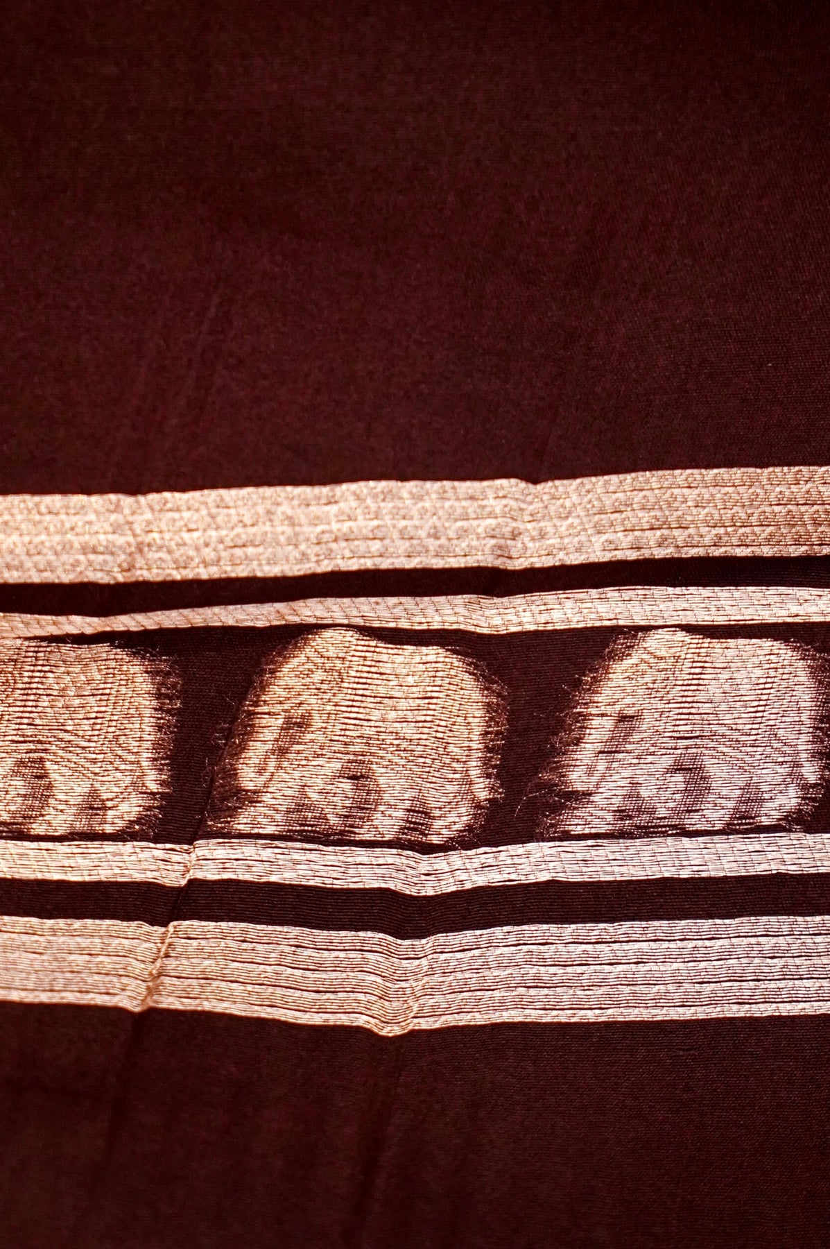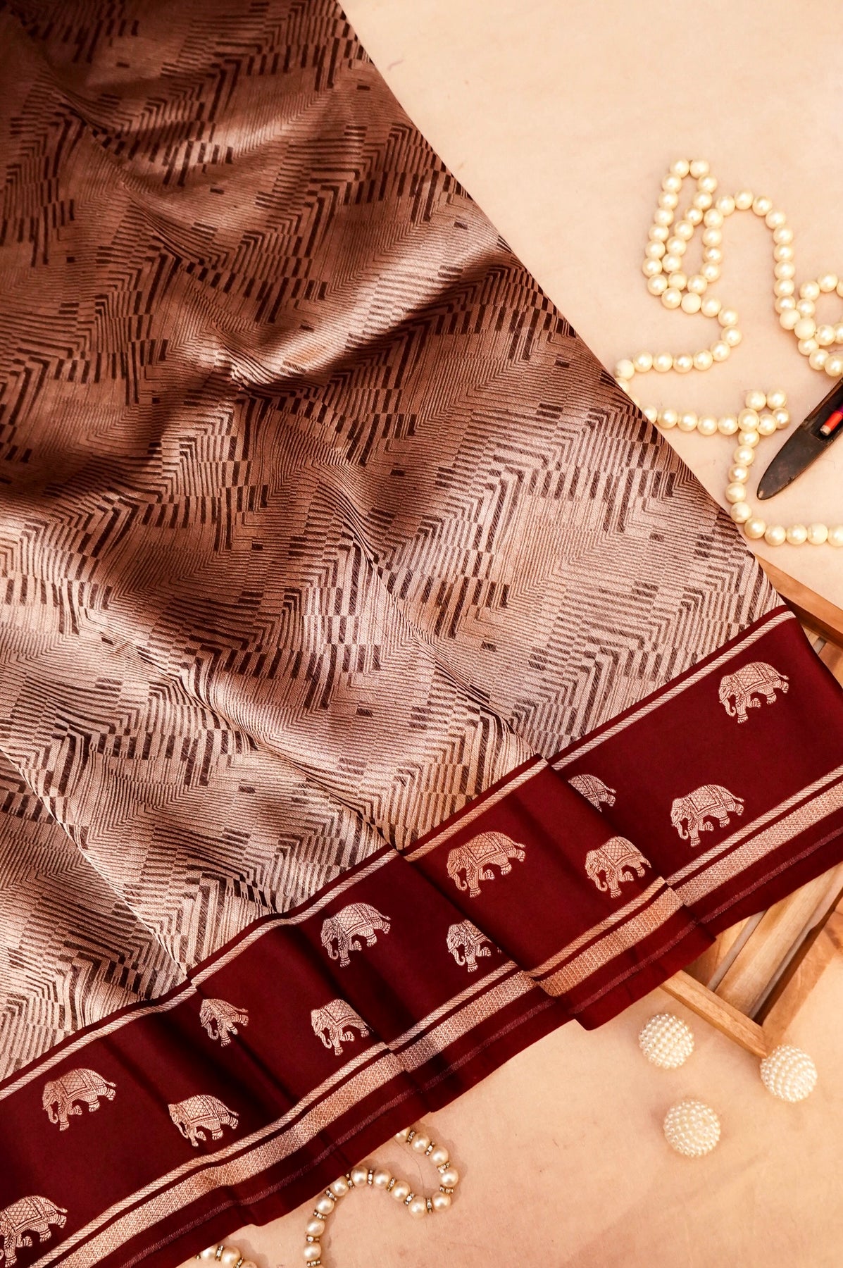 Earthly Elegance – Brown Pure Handloom Organza Silk Saree with Elephant Motif Border