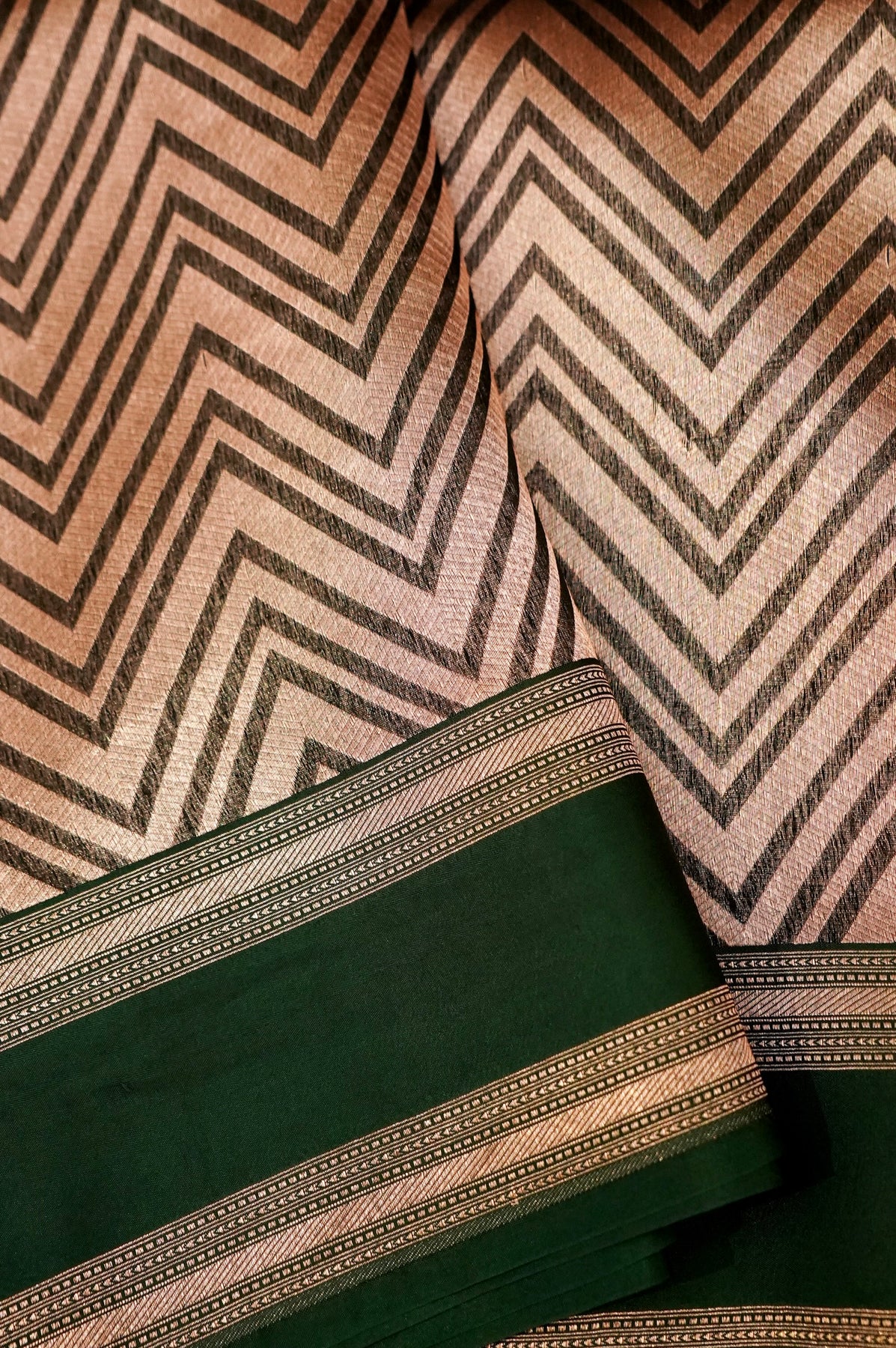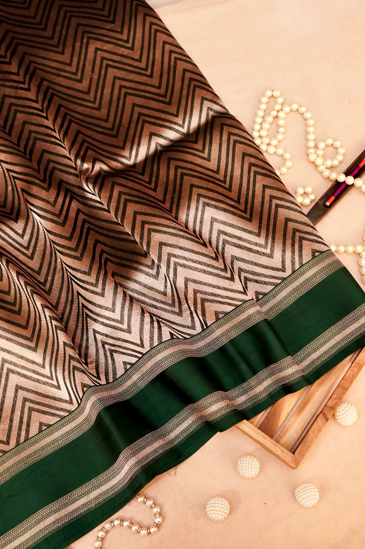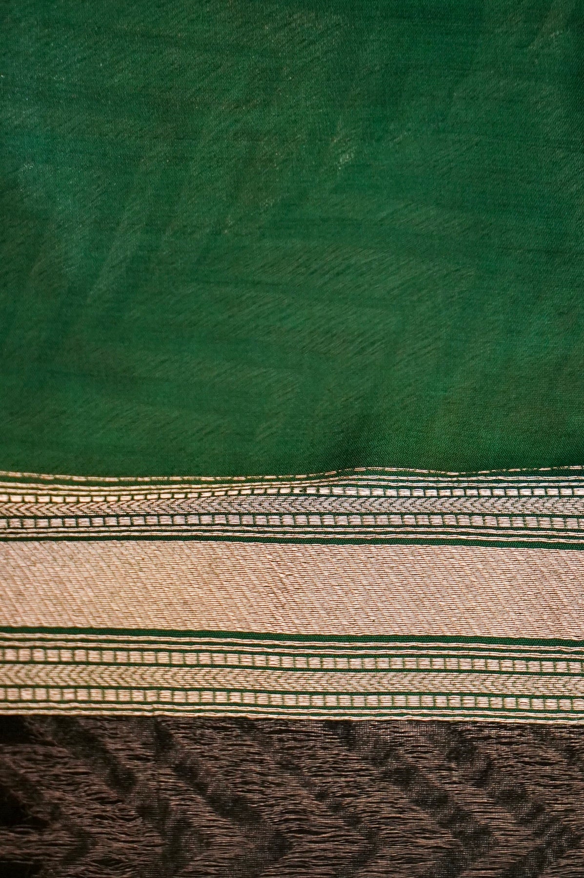 Emerald Soirée – Green Pure Handloom Organza Brocade Silk Patli Saree