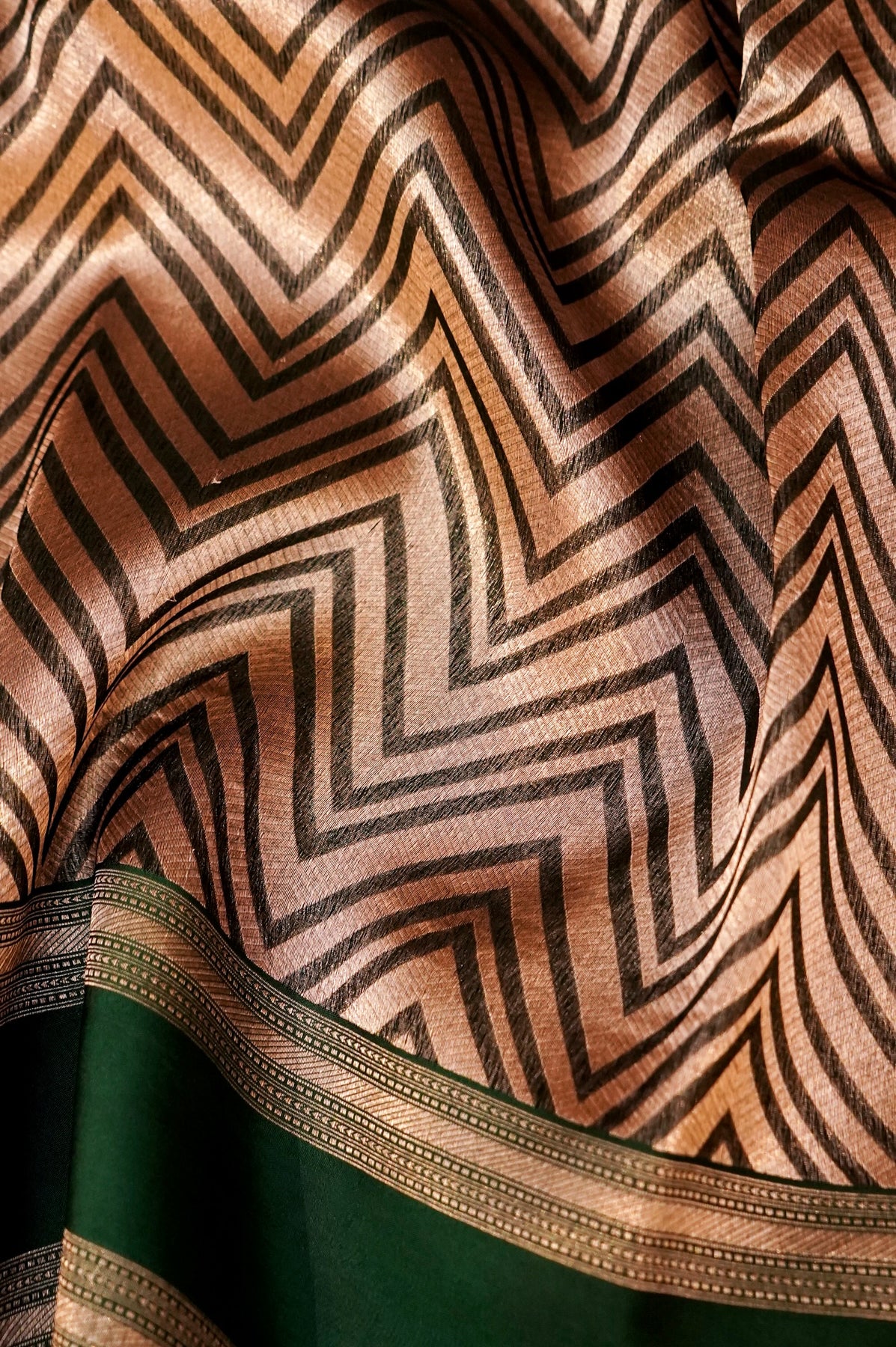 Turn heads at every celebration with this Green Pure Handloom Organza Brocade Silk Patli Saree. Featuring a luxurious silk border and intricate designer chevron weaving pattern, this saree is perfect for cocktail parties and festive soirées. Handcrafted with precision, the sheer organza fabric drapes elegantly, showcasing the rich texture and lustrous sheen of brocade silk. A fusion of contemporary style and traditional craftsmanship, it’s an ideal choice for sophisticated gatherings and special occasions