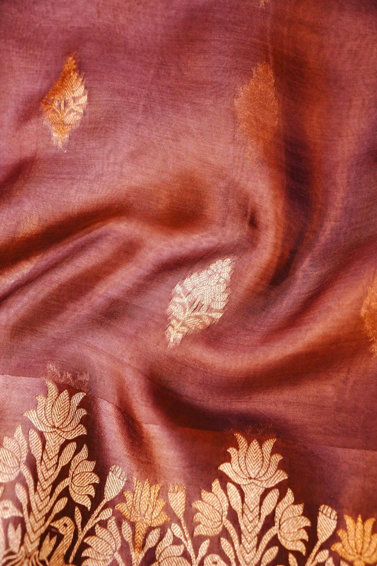 Graceful Dusty Rose Sonaroopa Muslin Organza Festive Saree