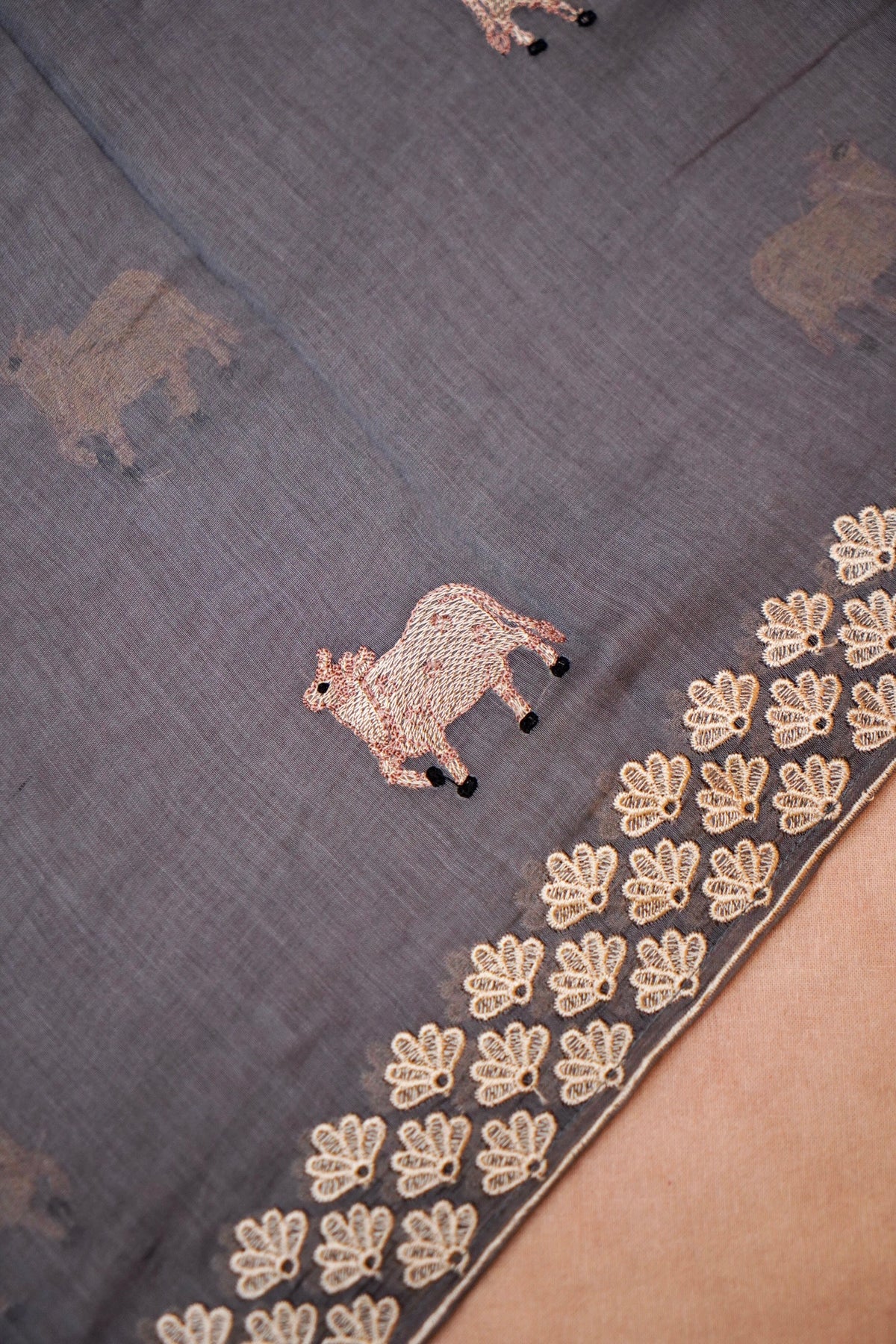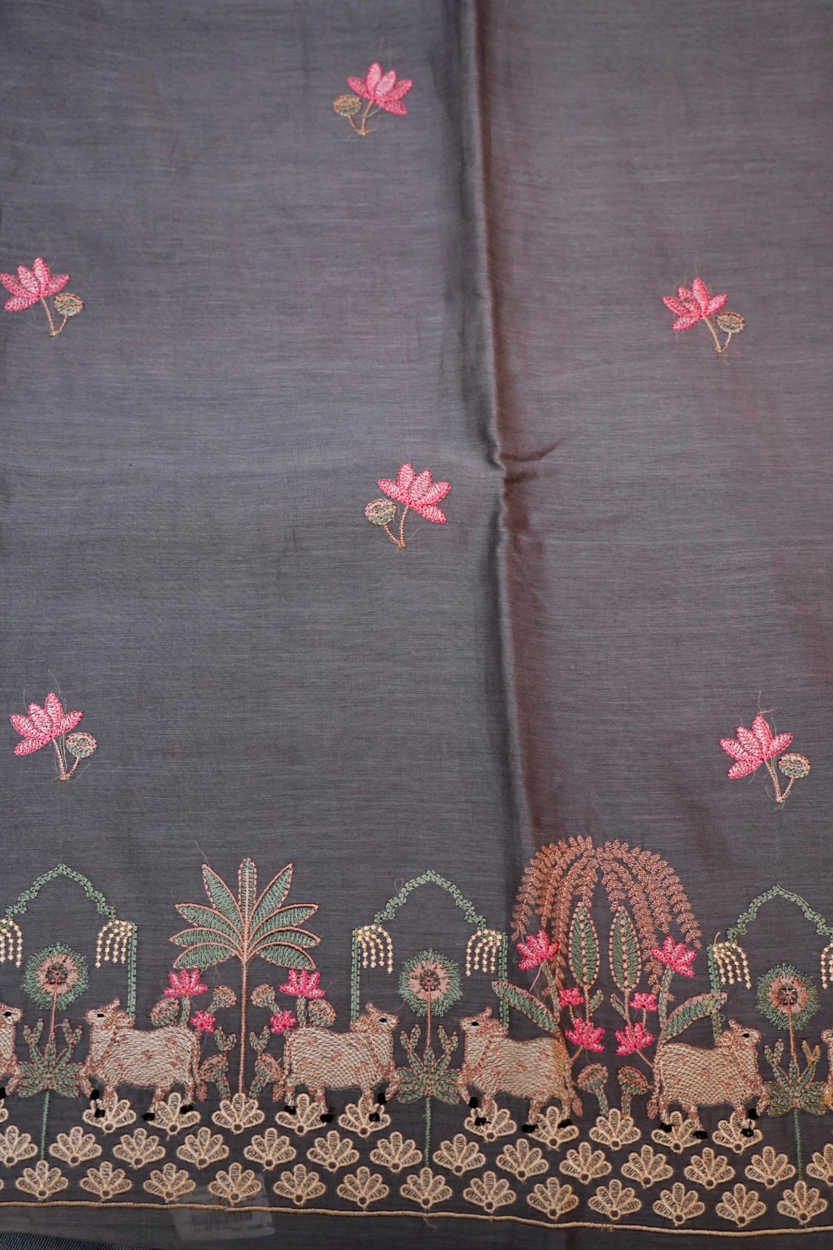 Grey Pure Chanderi Silk Suit Set with Pichwai Thread Embroidery