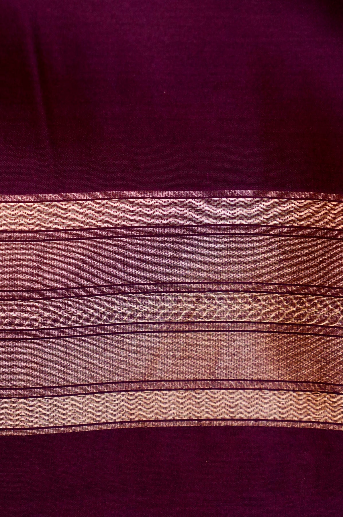 Imperial Wine Majesty – Dark Purple Pure Katan Silk Handloom Banarasi Madhubala Saree
