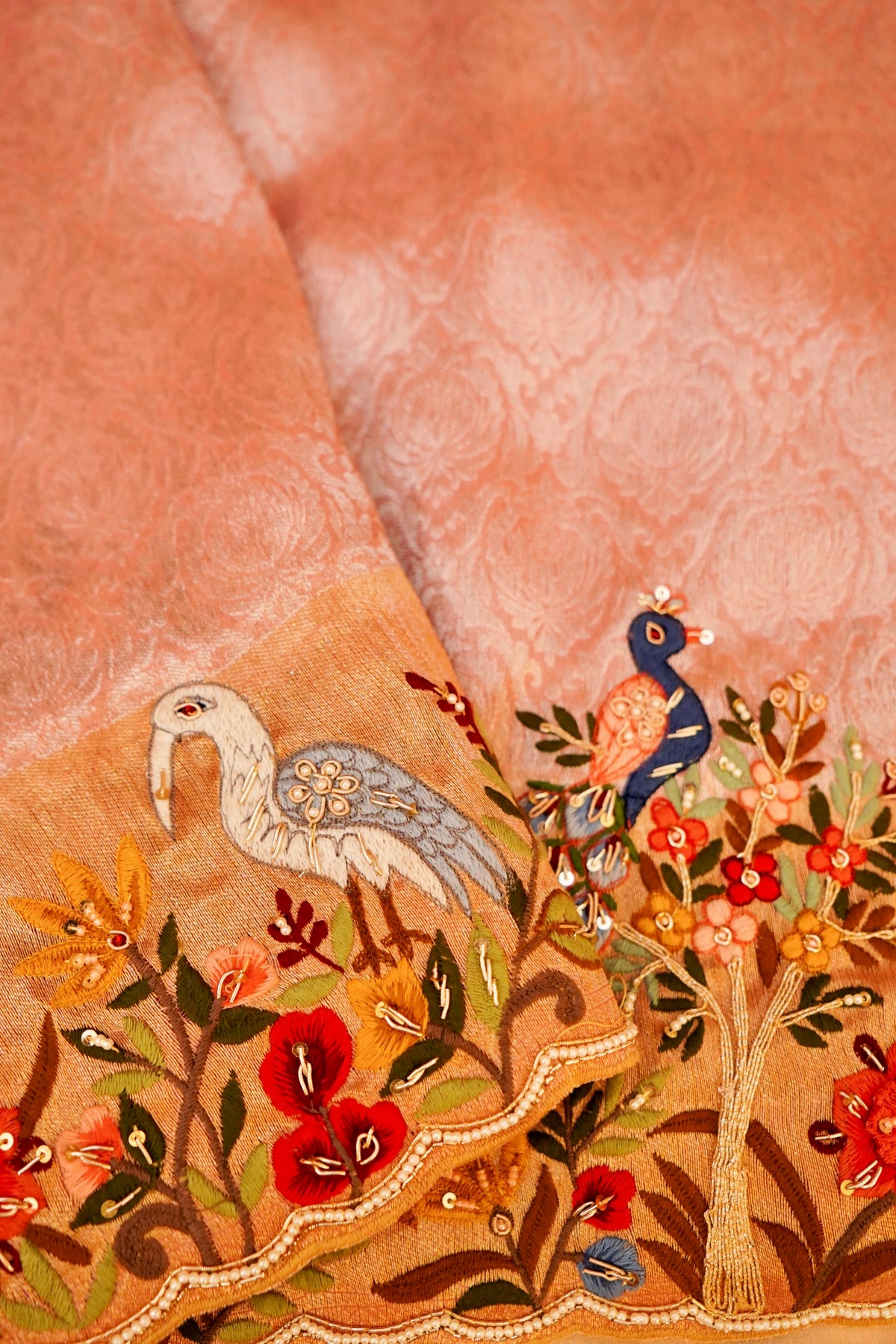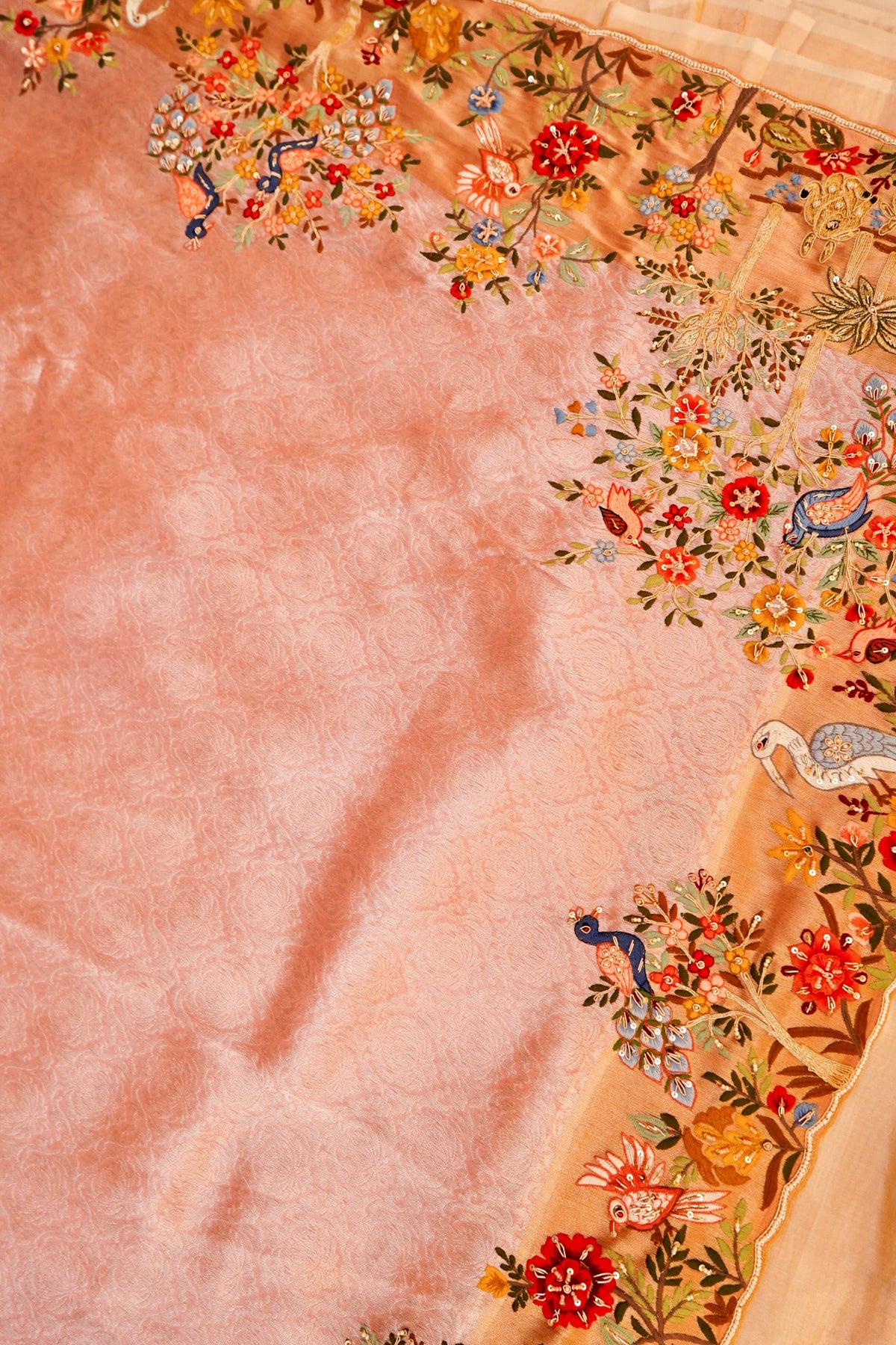 Pink Banarasi Soft Silk Brocade Saree with Meenakari Zardozi | Pichwai Raas Krishna Leela Inspired