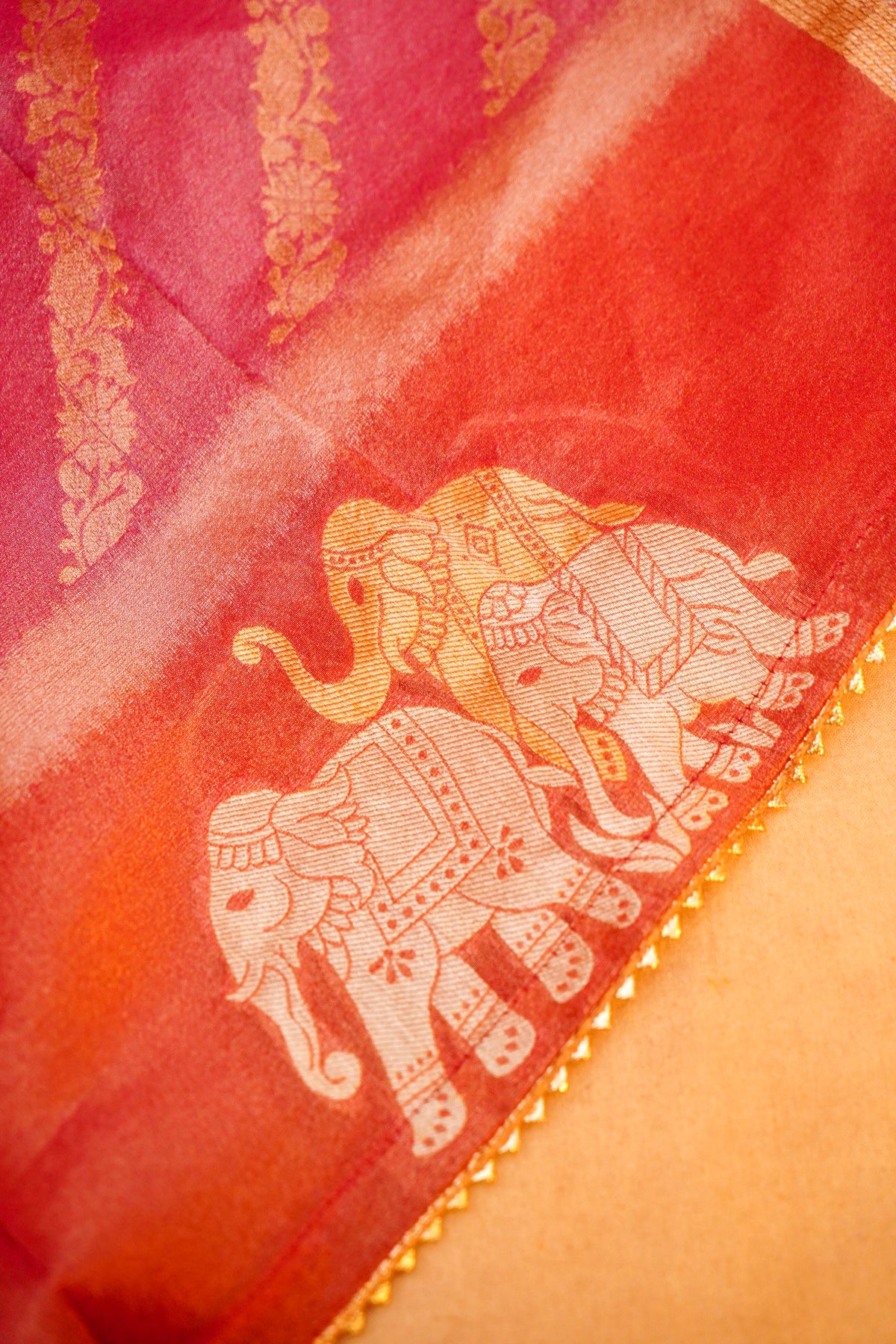 Pink Banarasi Tissue Silk Saree with Meenakari Jangla Top and Elephant Motif Dupatta