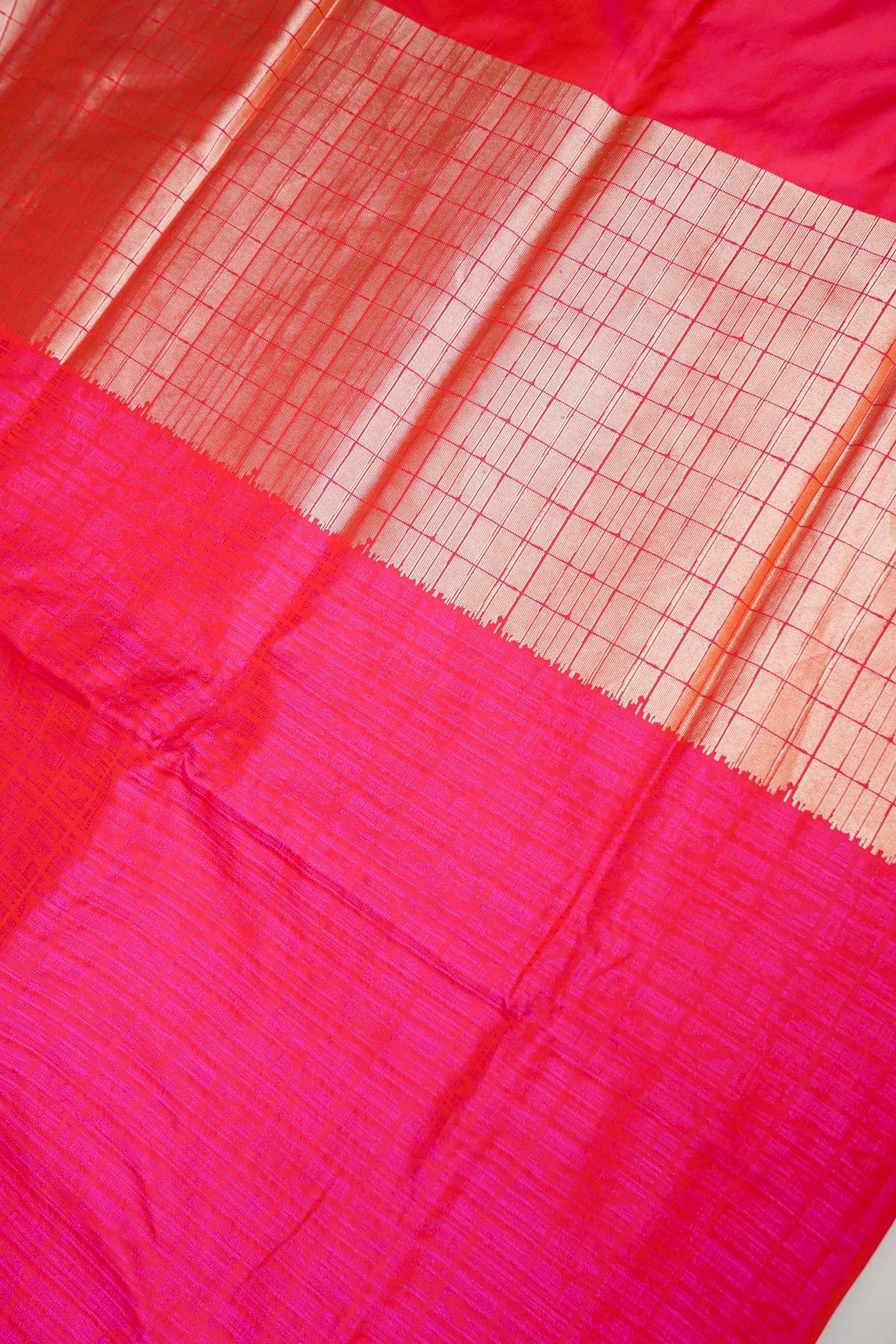 Pink Handwoven Pure Satan Silk Tanchoi Saree with Thread Weaving Design
