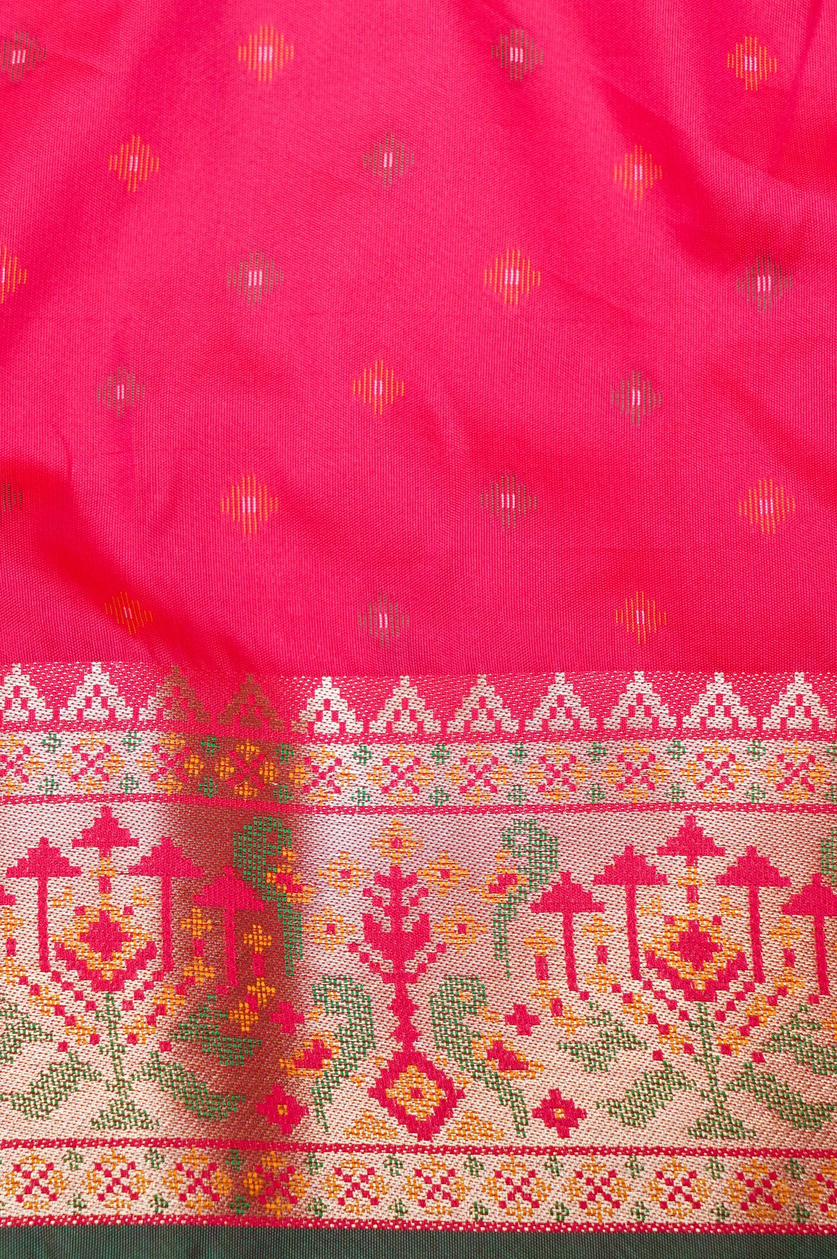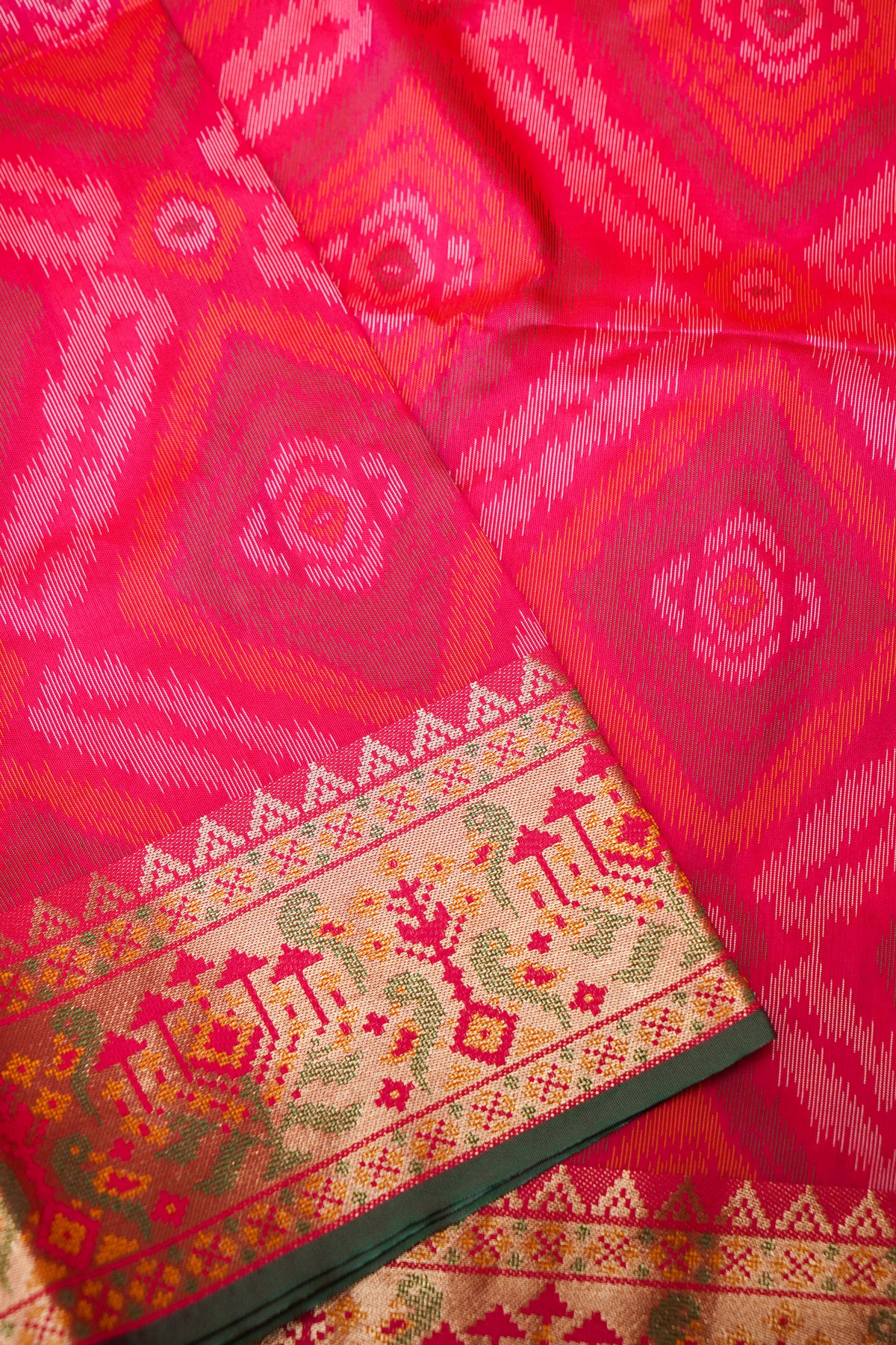 Pink Soft Silk Ikat Inspired Bridal Saree with Golden Zari Heavy Border & Pallu
