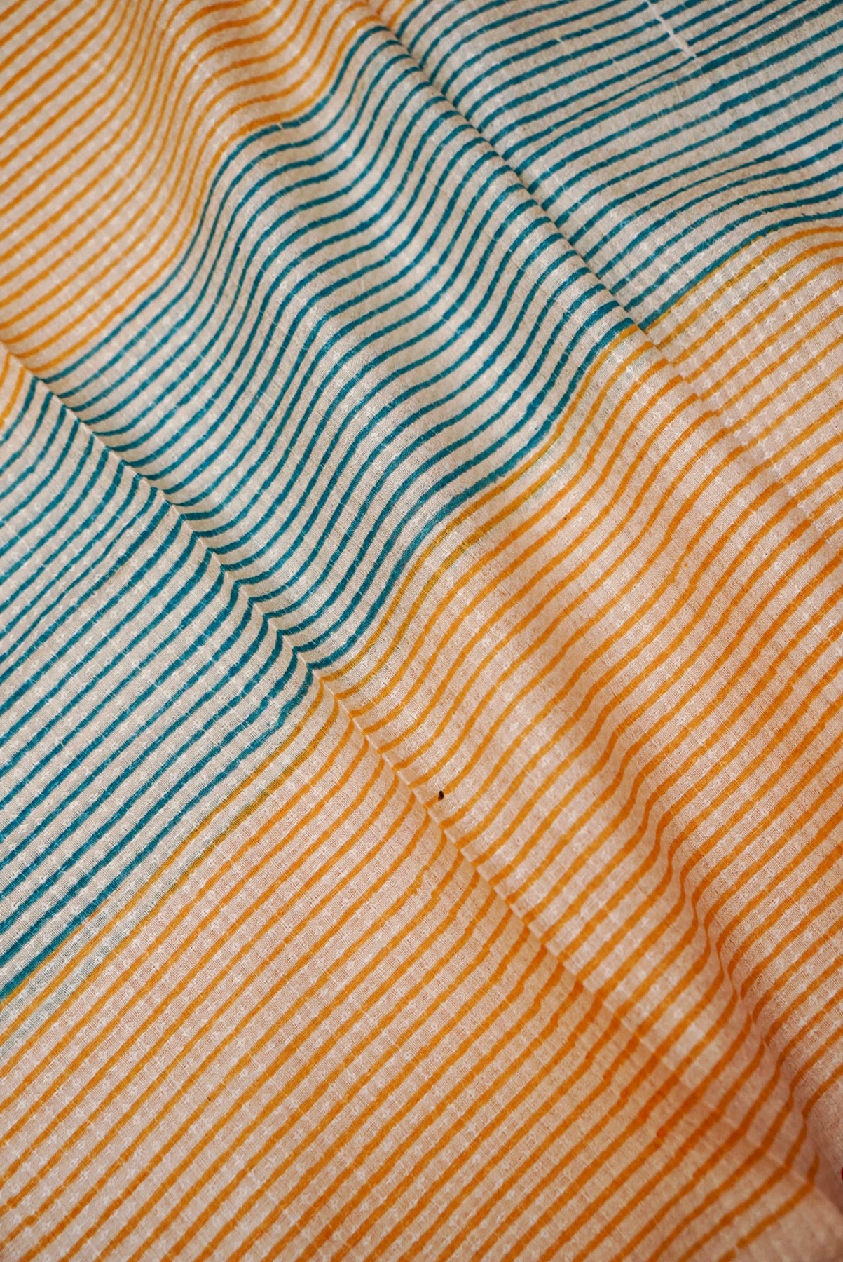 Celebrate artistry and elegance with this Off-White Pure Silk Tussar Fabric, featuring intricate Mural Art thread embroidery that reflects fine craftsmanship. The fabric is adorned with hand block prints all over, adding a timeless, handcrafted charm. Lightweight yet luxurious, this fabric is perfect for creating bespoke ethnic outfits, festive ensembles, or designer silhouettes. A seamless blend of traditional artistry and contemporary style, it promises a sophisticated, statement-making wardrobe piece for those who value exclusive handcrafted elegance