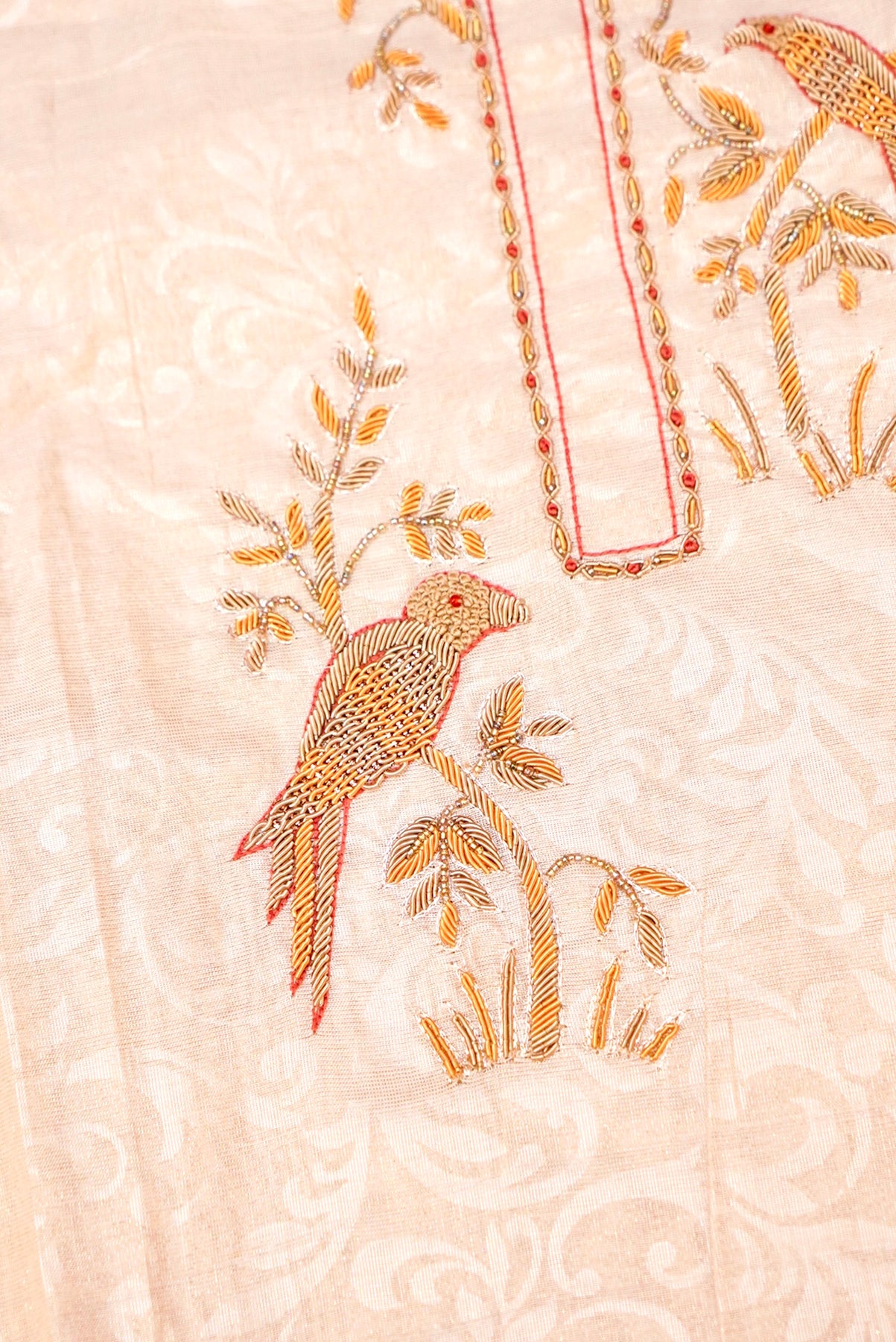 Radiant Rose Gold Chanderi Tissue Ensemble with Zardozi Detailing