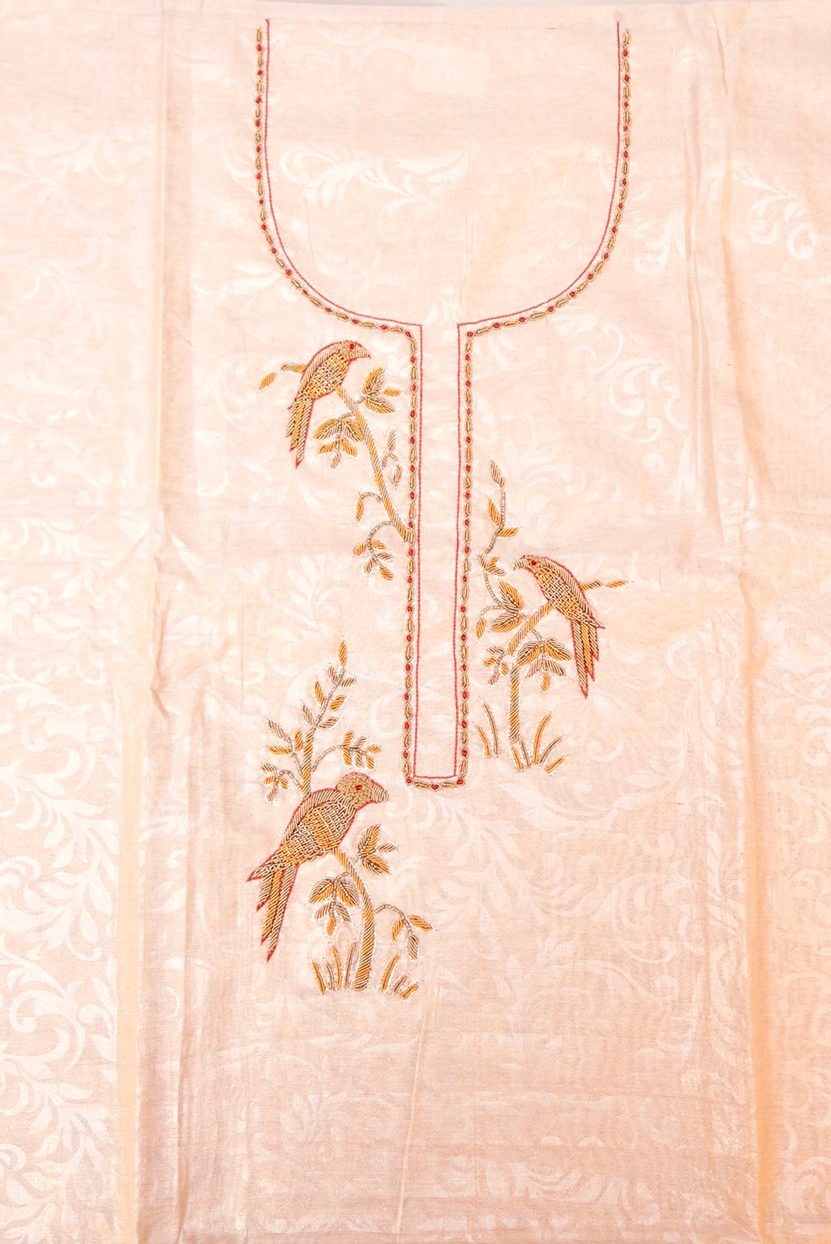 Step into timeless elegance with our Rose Gold Self-Woven Pure Chanderi Tissue Silk Suit, exquisitely embellished with Resham and Zardozi hand embroidery. The subtle shimmer of Chanderi tissue enhances the intricate detailing, creating a look of refined luxury. Paired with a matching Chanderi tissue leheriya dupatta, this ensemble beautifully blends traditional craftsmanship with modern sophistication—perfect for festive celebrations, weddings, and graceful daytime occasions