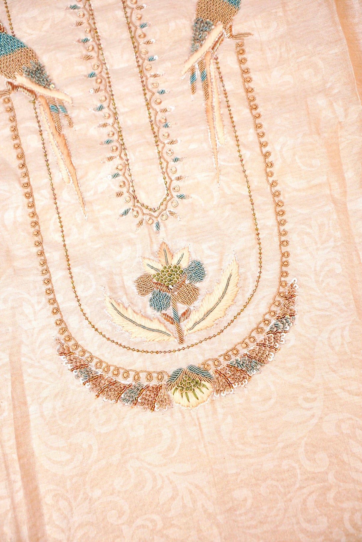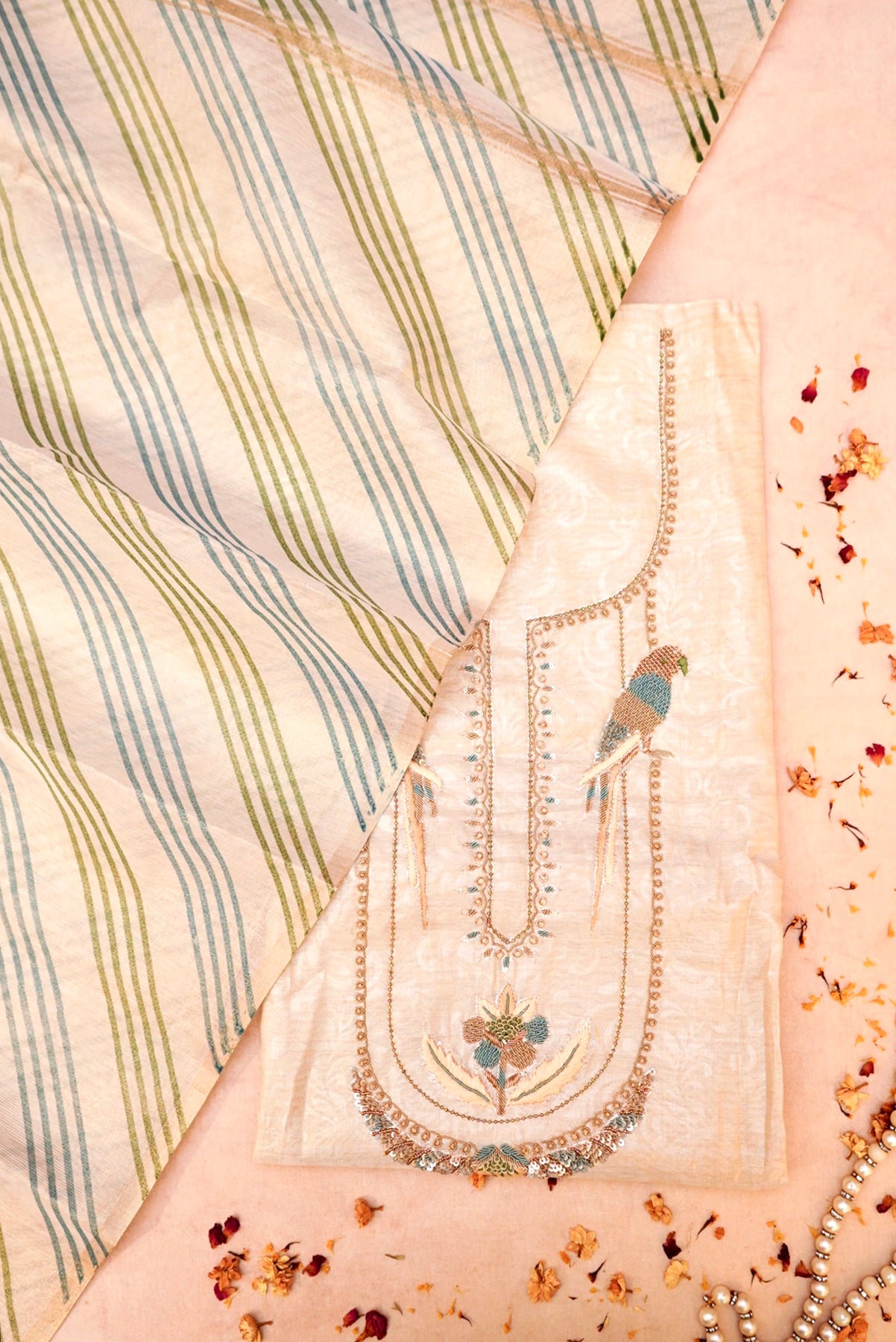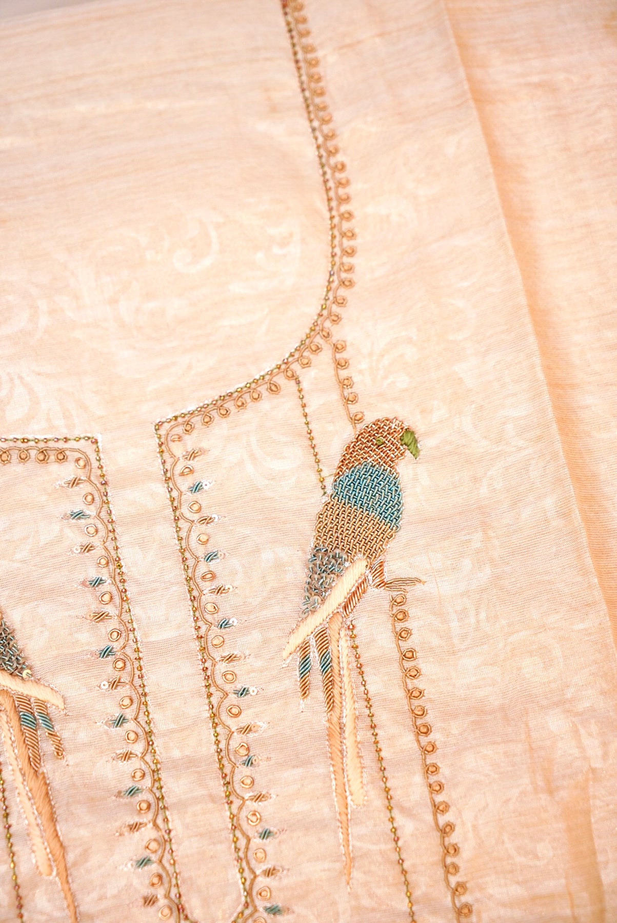 Rose Gold Chanderi Tissue Silk Suit with Handcrafted Zardozi & Resham Elegance