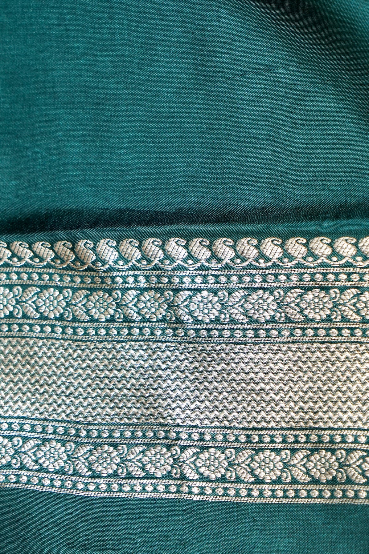 Sage Green Banarasi Soft Silk Saree with Meenakari Stripes