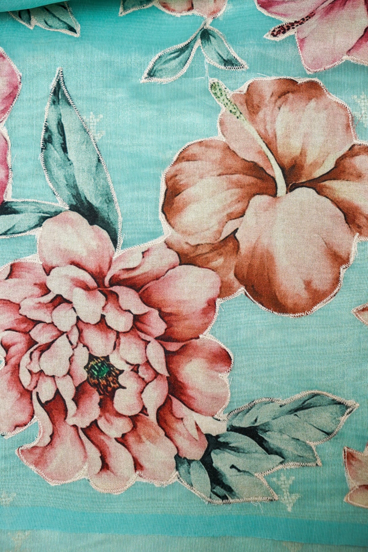Sea Green Tissue Saree with Cross Stitch Resham Embroidery & Appliqué Work