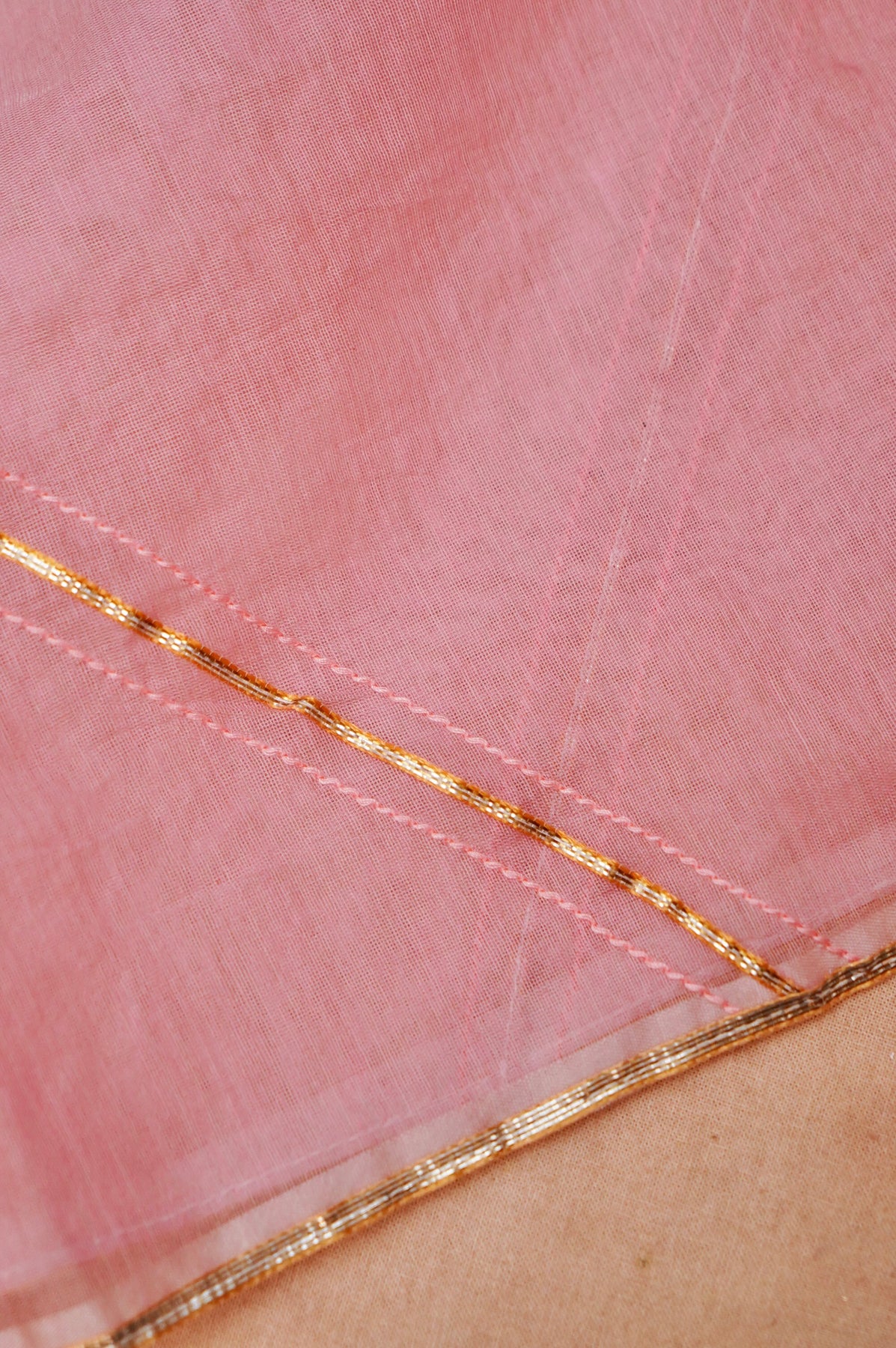 Soft and graceful in pastel pink, this Pure Muslin unstitched suit is adorned with intricate Zardozi hand embroidery that adds richness and charm to its delicate texture. Paired with a beautifully embellished dupatta featuring traditional Gotta Patti work, the ensemble radiates festive elegance. Perfect for weddings, celebrations, and cultural occasions, it blends timeless artistry with refined sophistication.