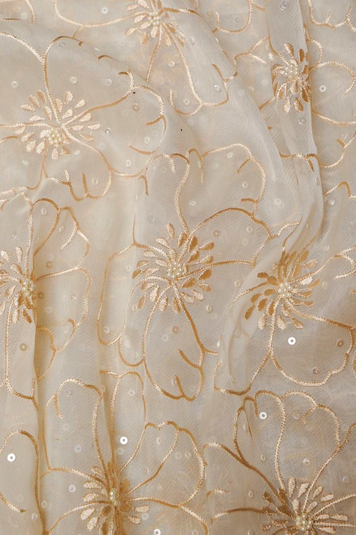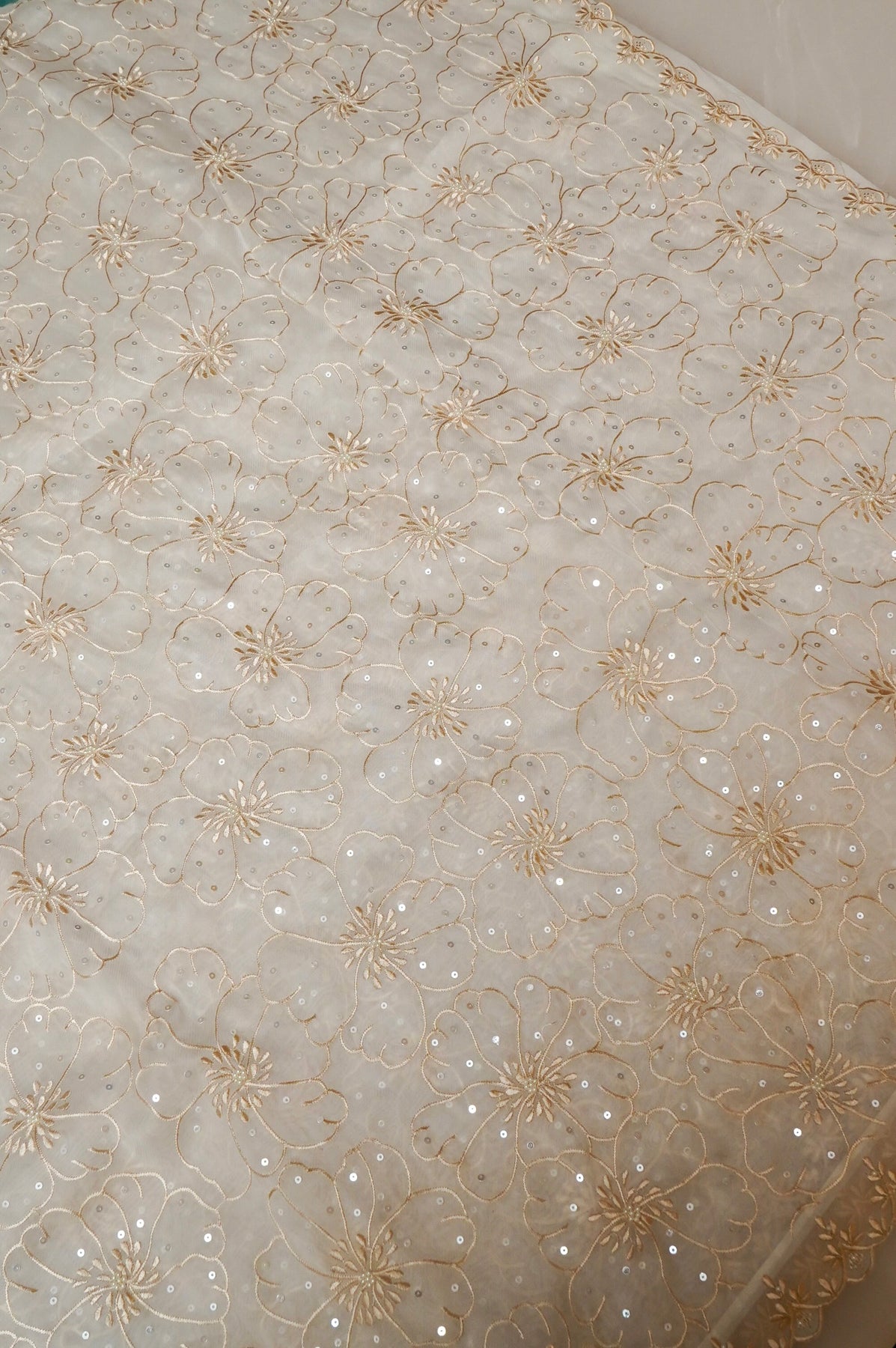 White Organza Tissue Saree with Resham & Pearl Embroidery with Tissue Blouse