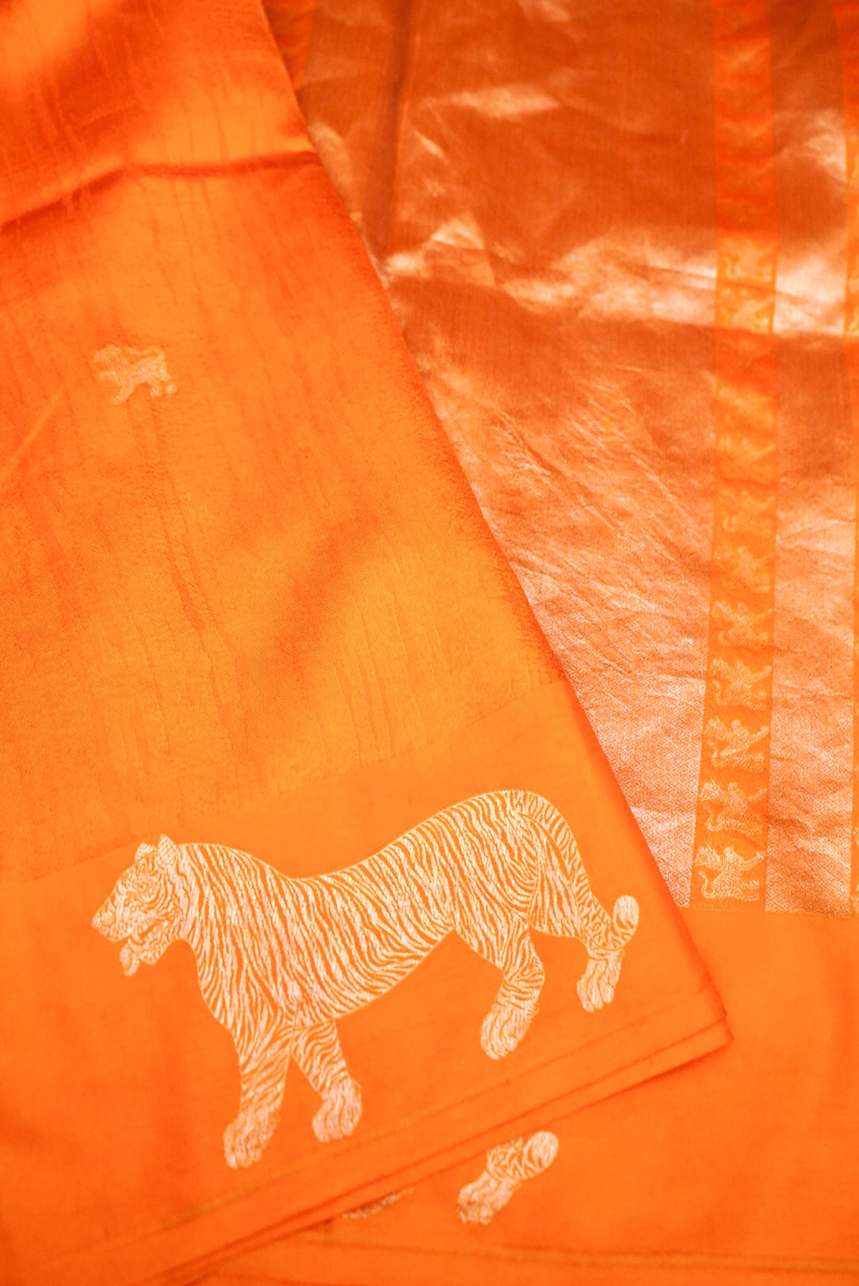 Yellow Banarasi Pure Katan Silk Saree with Zari Tiger Motif