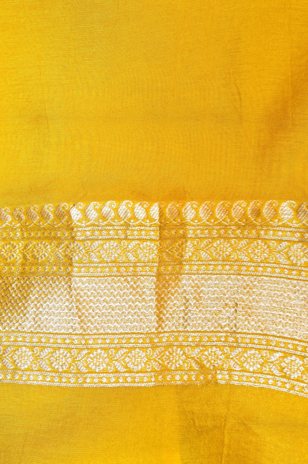 Radiate festive charm in this stunning Yellow Banarasi Soft Silk Saree, a perfect pick for Haldi ceremonies and traditional celebrations. Crafted in luxurious soft silk, it features all-over zari and thread woven meenakari vertical stripe patterns that add richness and elegance to the drape. The saree is beautifully finished with a heavy woven border and an opulent pallu, showcasing timeless Banarasi craftsmanship. Bright, graceful, and regal, this saree pairs perfectly with floral jewelry and traditional accessories, making you look effortlessly radiant on your special day