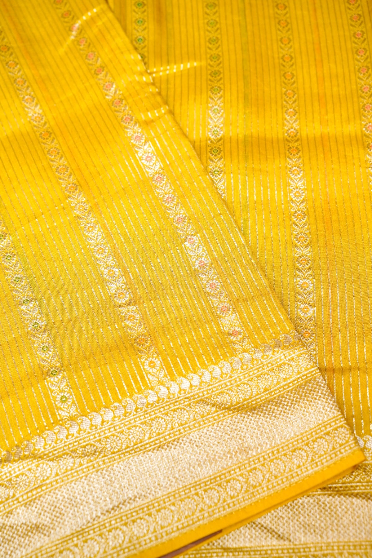 Yellow Banarasi Soft Silk Meenakari Stripes Saree