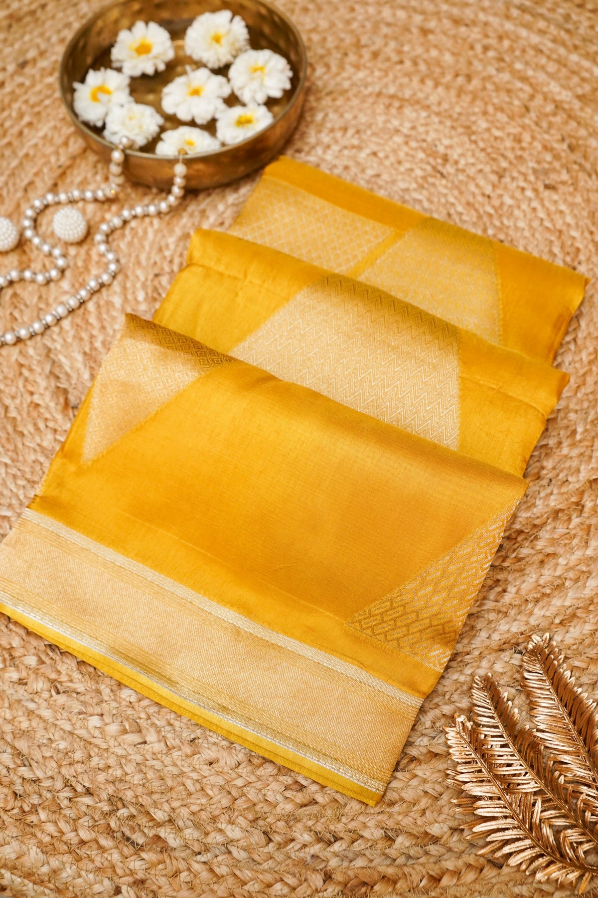 Yellow Contemporary Banarasi Silk Saree with Sona Rupa Zari Weave